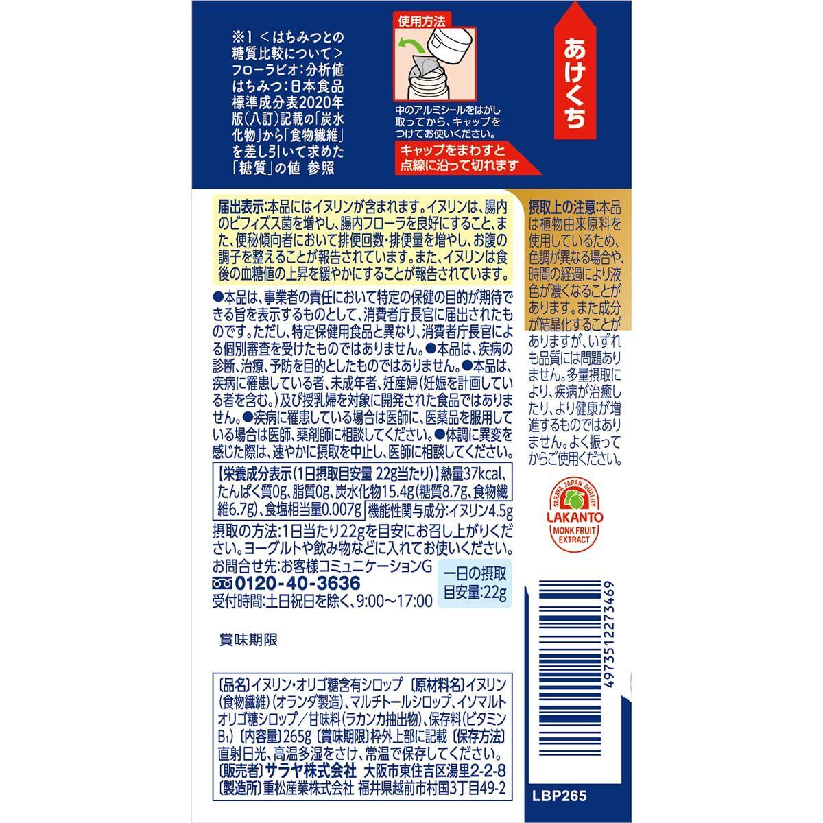 食物繊維(イヌリン)、マルチトールシロップ、イソマルトオリゴ糖シロップ、甘味料(ラカンカ抽出物)、保存料(ビタミンB1)