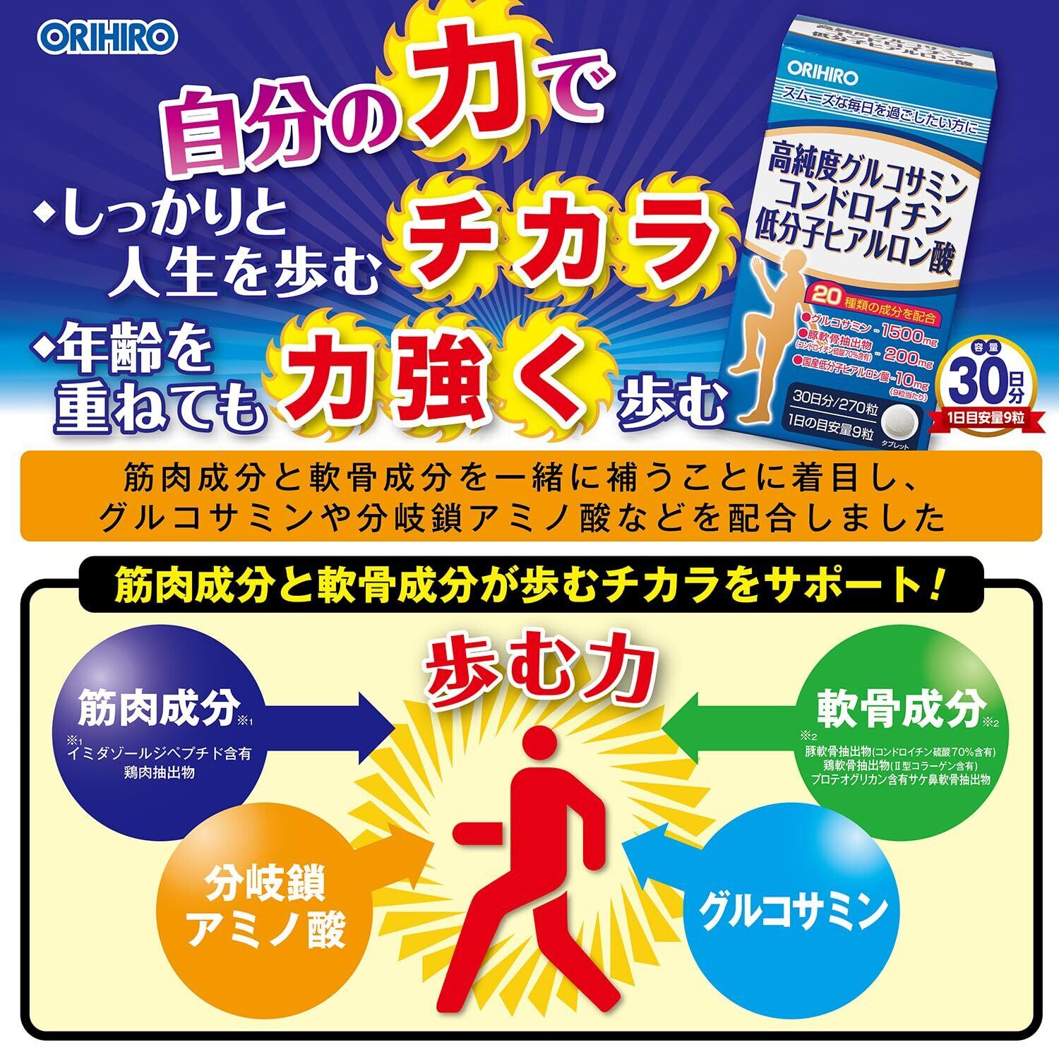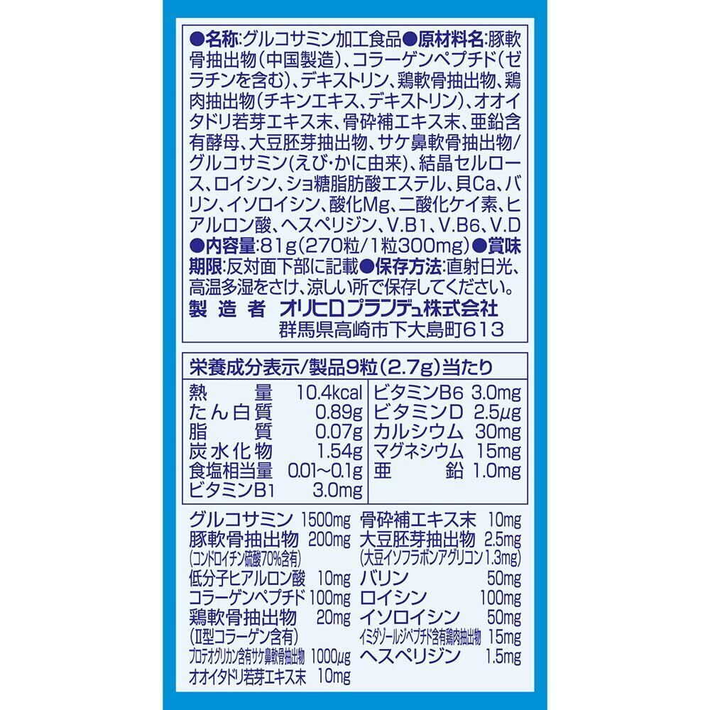 オリヒロ 高純度グルコサミン コンドロイチン 低分子ヒアルロン酸 270粒 Ⅱ型コラーゲン 大豆イソフラボン 筋骨草