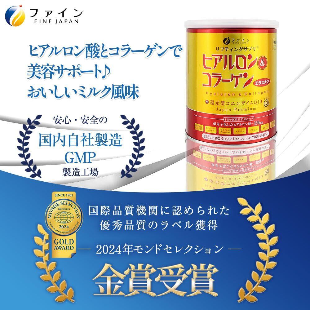 ファイン ヒアルロン & コラーゲン + 還元型コエンザイムQ10 缶タイプ 28日分(196g入) ハトムギエキス エラスチン ビタミンC 配合