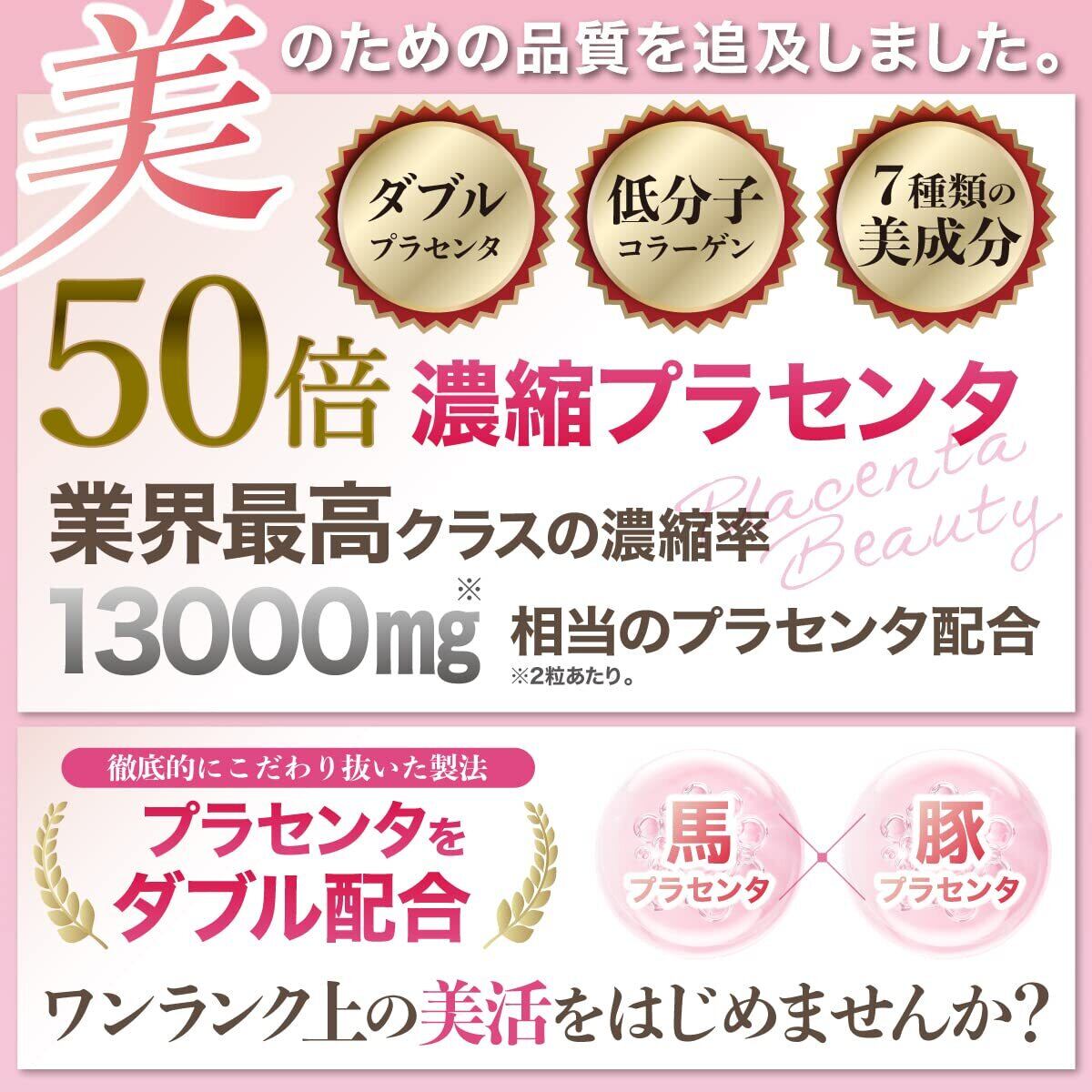 【美容2大成分】プラセンタ、超低分子コラーゲンを使用。5年後も 自信をもてる感動の2大成分