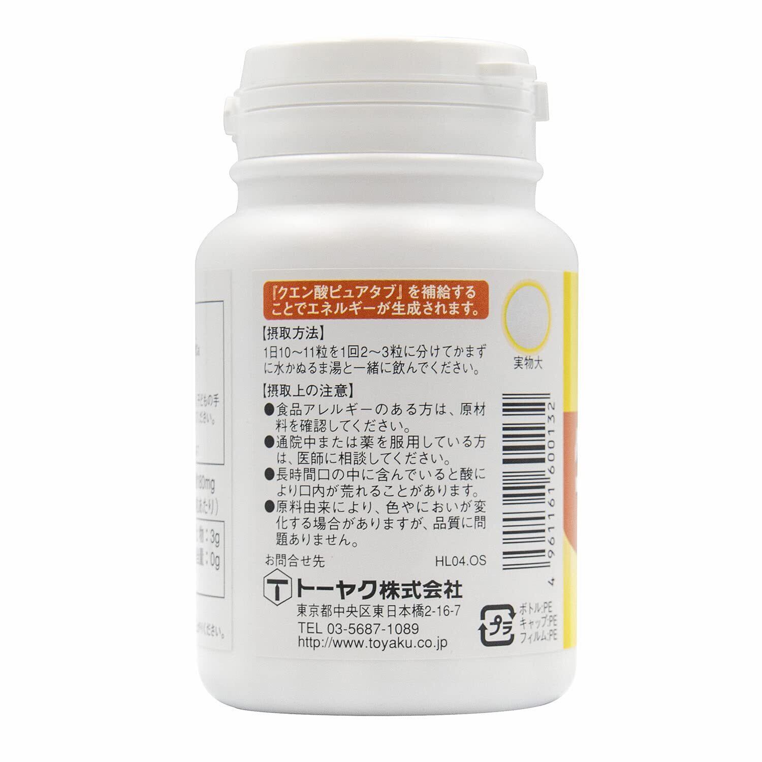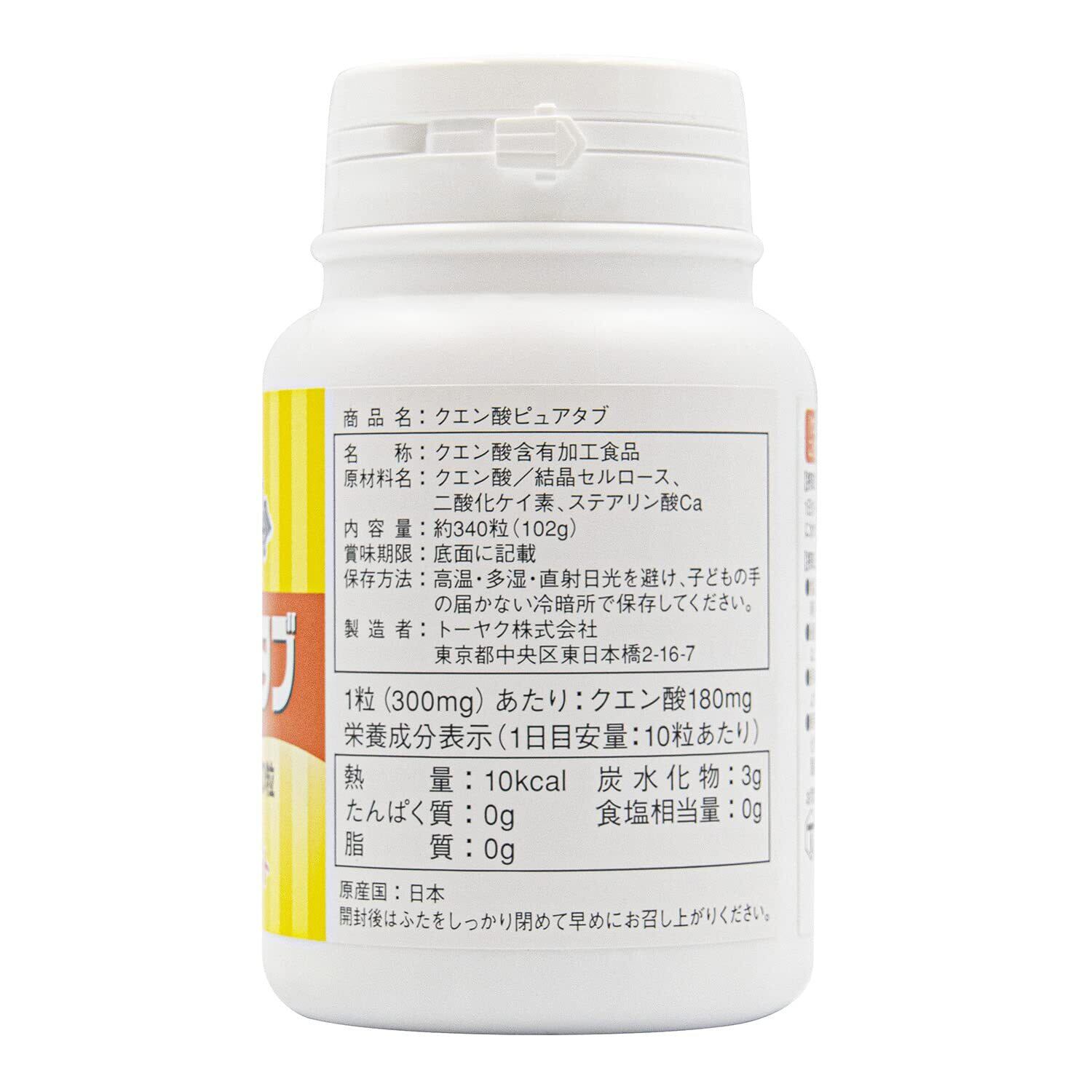 ・1粒(300MG)あたり:クエン酸180MG栄養成分表示(10Gあたり)(エネルギー:40KCAL、たんぱく質:10MG、脂質:320MG、炭水化物:9350MG、ナトリウム:0.06MG)クエン酸:6000MG
