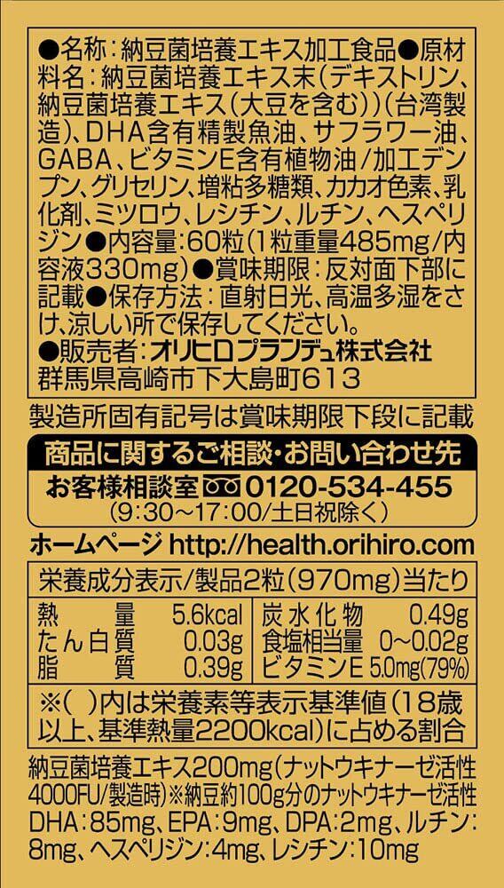 オリヒロ ナットウキナーゼ4000 60粒 納豆菌 DHA EPA ヘスペリジン レシチン