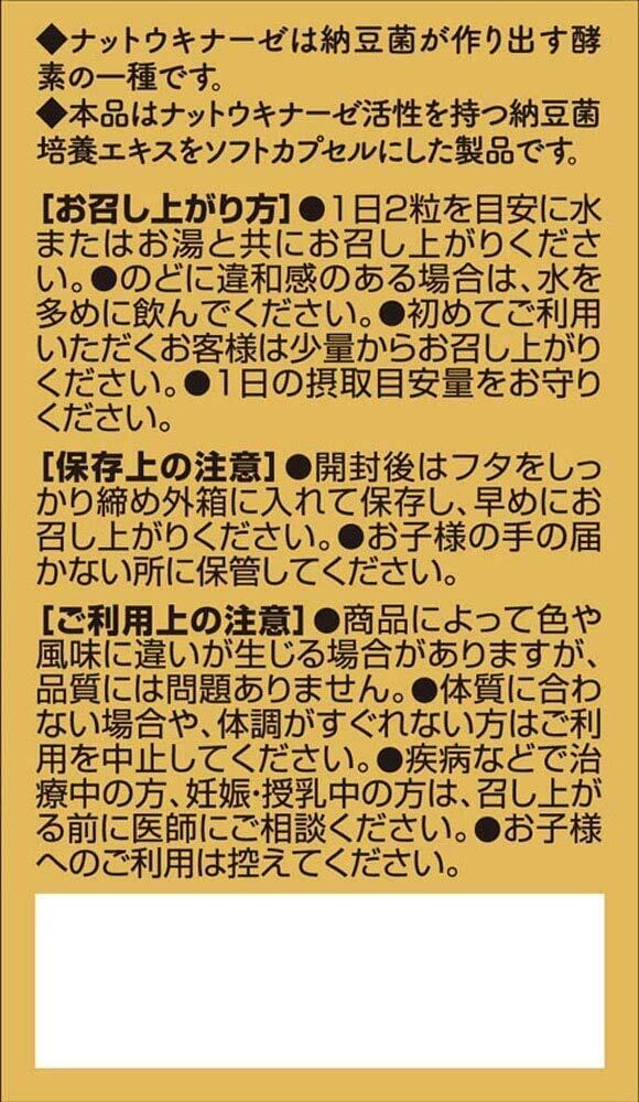 1日目安量2粒に納豆約100g(2パック分)相当のナットウキナーゼ活性が含まれています。