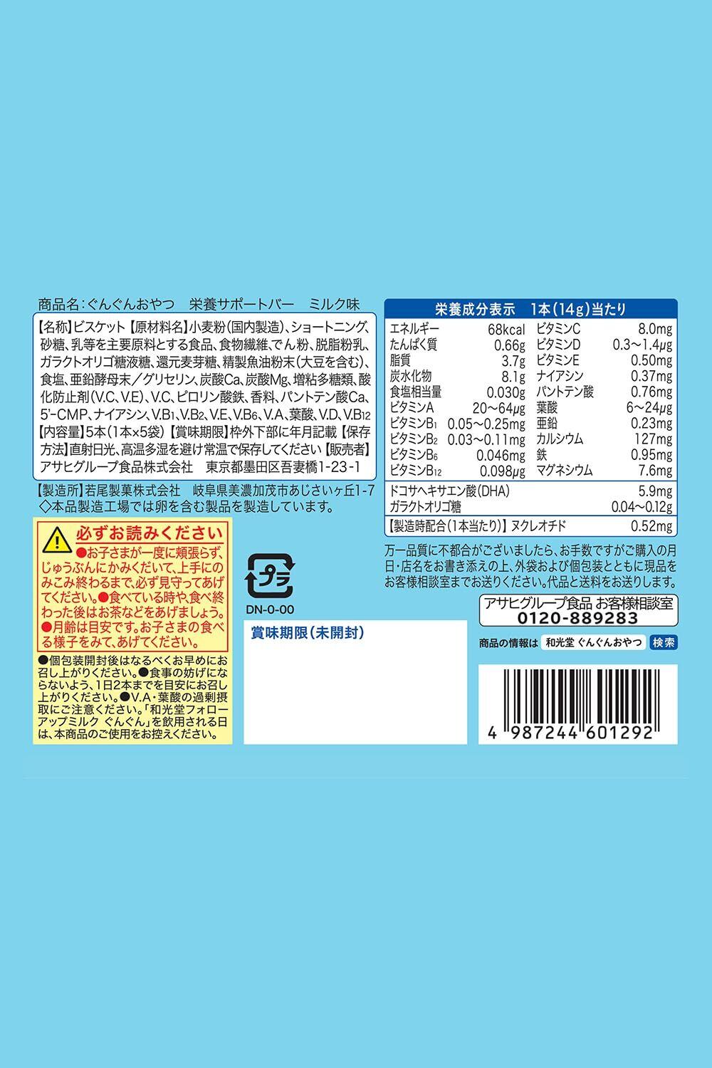 【和光堂】 ぐんぐんおやつ栄養サポートバー ミルク味 [1歳半頃から] 栄養サポート 鉄たっぷり カルシウム DHA ビタミン・ミネラル 亜鉛