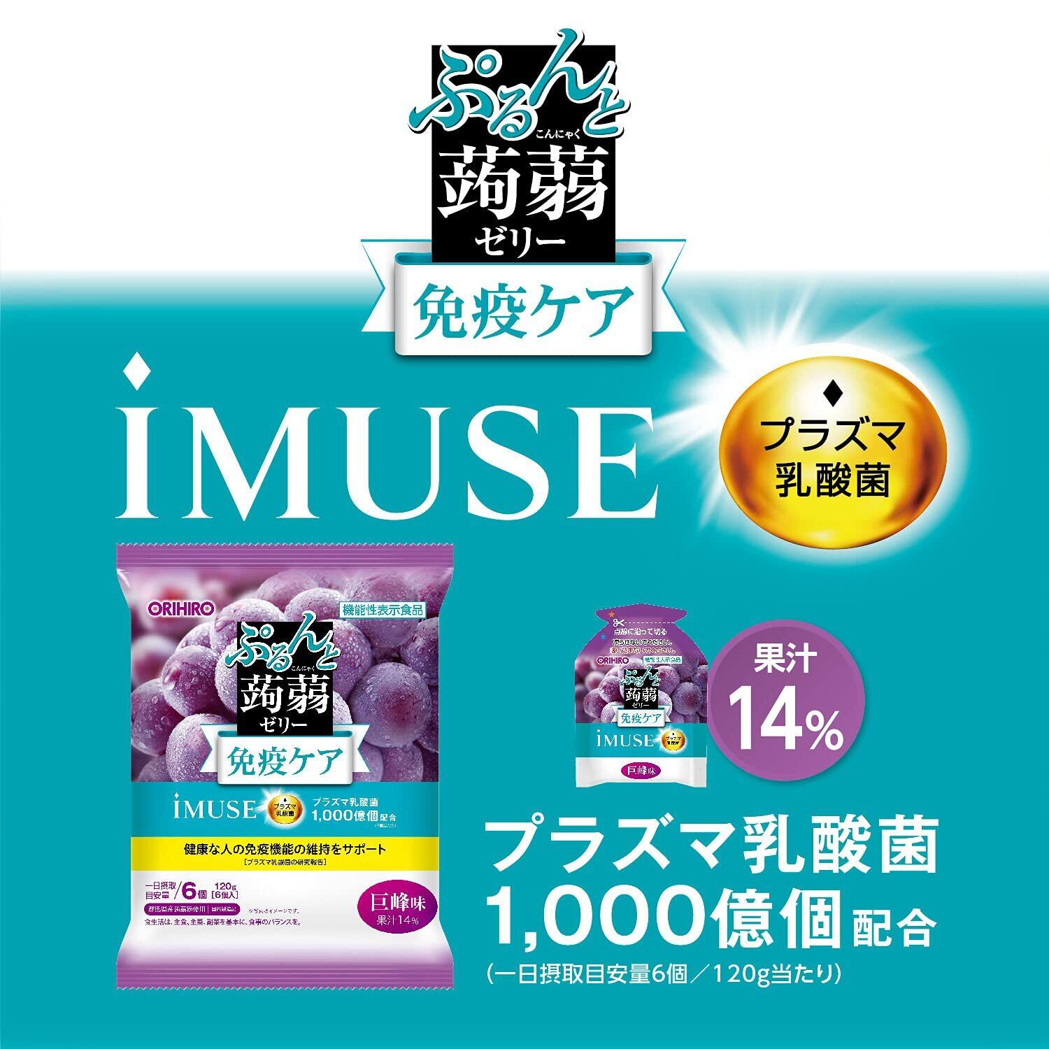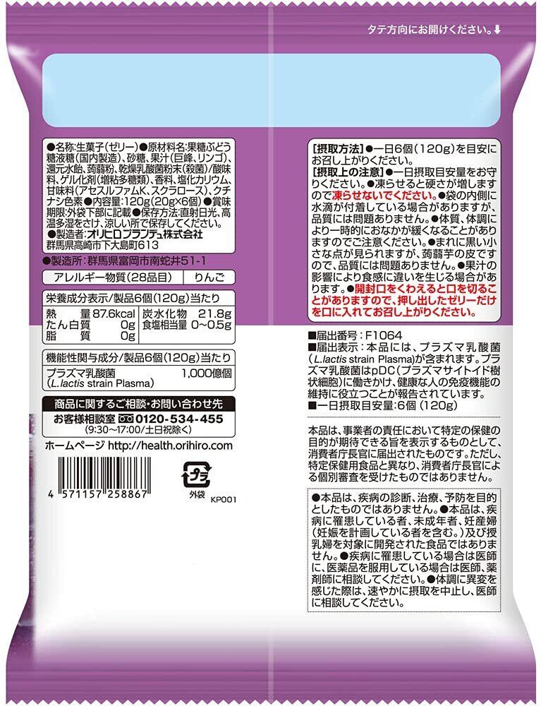 オリヒロ 機能性表示食品 ぷるんと蒟蒻ゼリーパウチ プラズマ乳酸菌(巨峰味) 1袋(20g×6個)