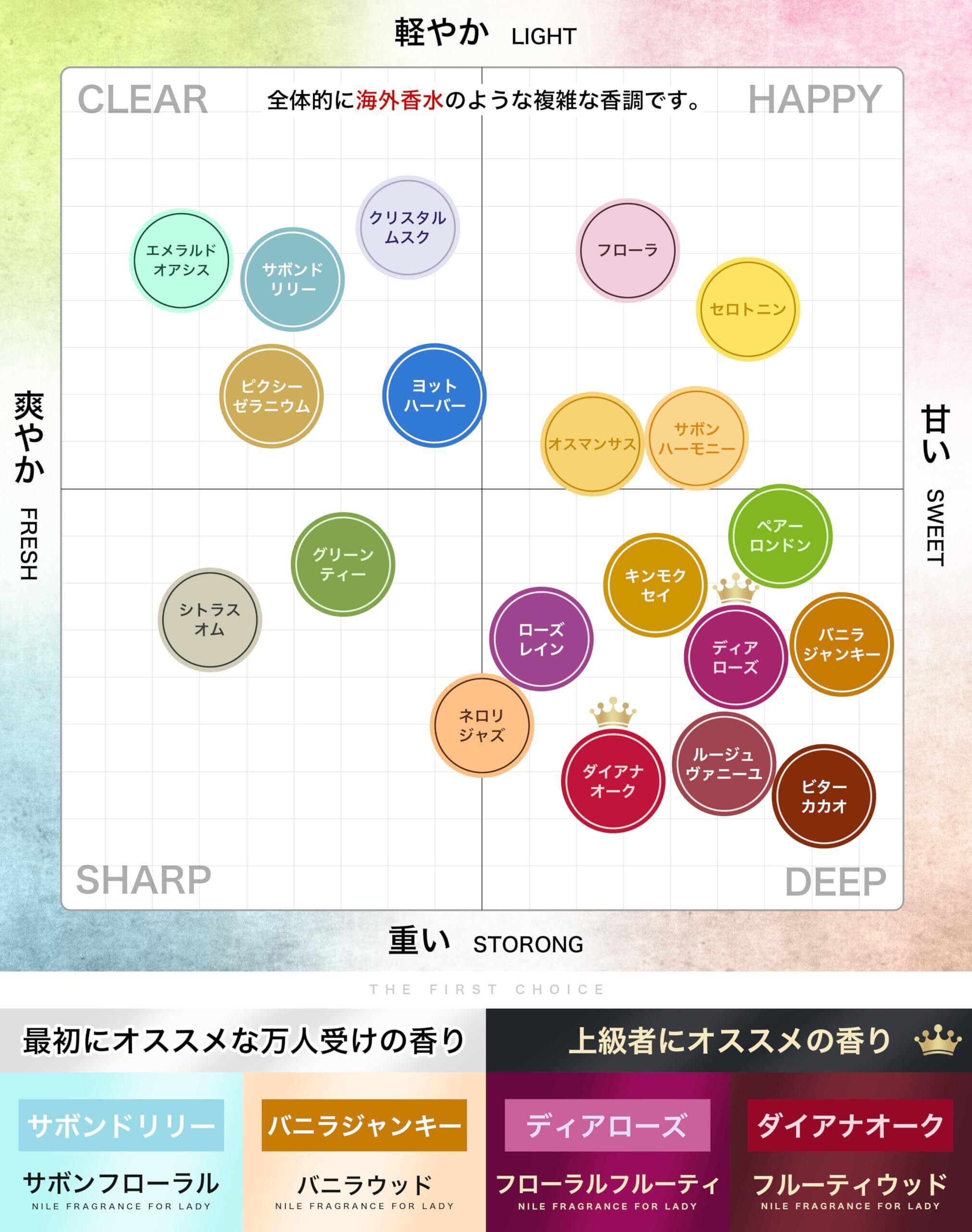 【高賦香率の芳醇なフレグランス】香りの織りなすハーモニーの余韻を味わってもらうため賦香率の濃度を高めました。1つ1つのオードトワレに秘められたストーリーをお楽しみ下さい。