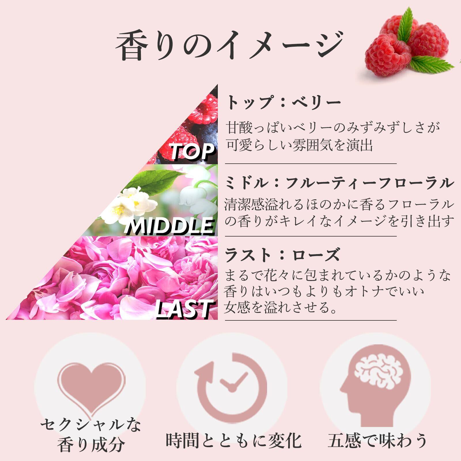 【心に火をつける魅力的な香り】フェロモン香水ではない成分を使用した、オスモフェリン配合の特別な女性用の香水。香りが変化するこだわりの香水「リビドーベリーロゼ」の魅力的な香りで包み込まれる、特別な体験と時間をお楽しみください。