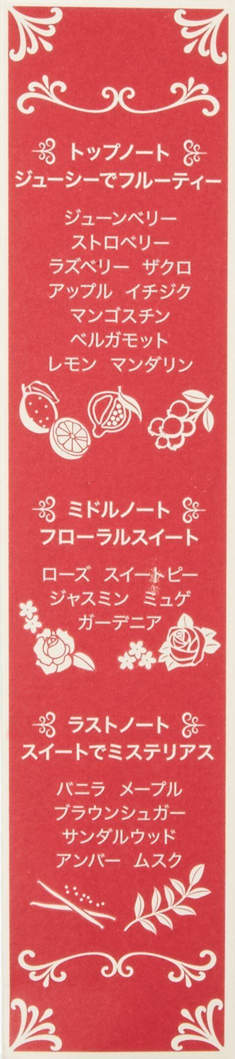 赤い果実や甘く可憐に香り立つブーケ、メープルシロップなどを凝縮したようなスイートでロマンティックな香り