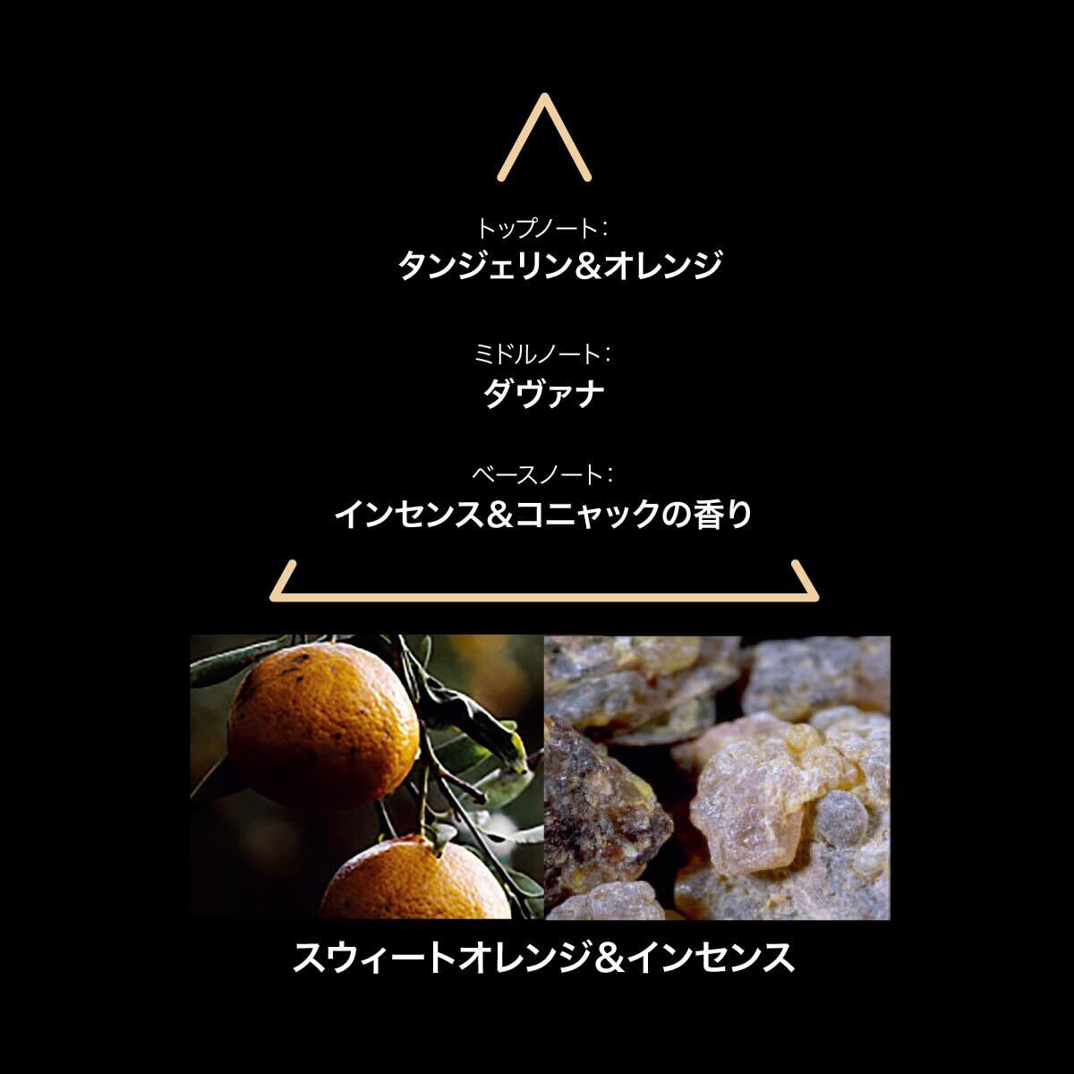 【トップノート】タンジェリン、オレンジ 【ミドルノート】ダヴァナ 【ラストノート】インセンス&コニャックの香り