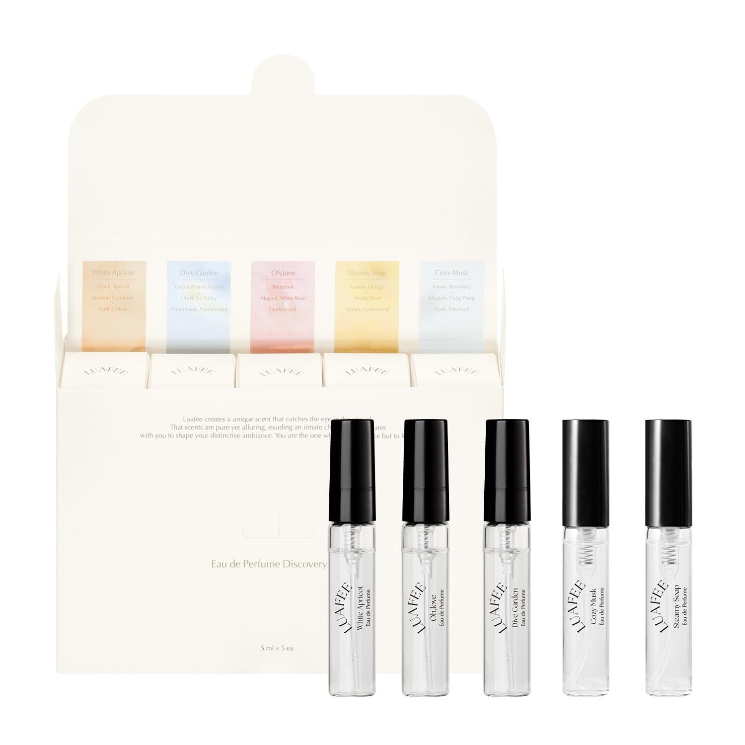 LUAFEE(ルアぺ公式) オードパルファム ミニチュア 5ml 5種セット 香水 お試しセット(ホワイトアプリコット+オーラブ+ダイブガーデン+コージームスク+スティーミーソープ)