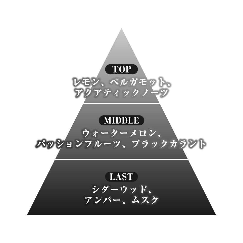 シックでモダンな外観とは異なり、フレッシュで、みずみずしく、優しい香りへと変化していく香調は、男のギャップを印象づけます。