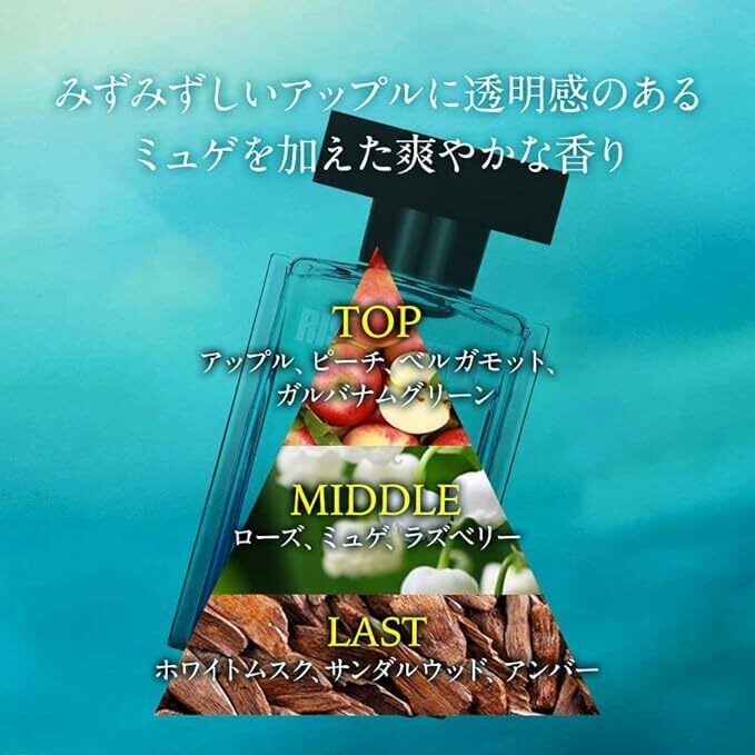 ■FRAGRANCE 穏やかな水が奏でる柔らかな光の音色。 あたり一面を輝かせ、世界を新しくまっさらに。 優しく包み込むガルバナムグリーンの香りがタフな男の色気を演出する。 透明感のあるミュゲを加え、この上なくみずみずしいフルーティーマリンノート。