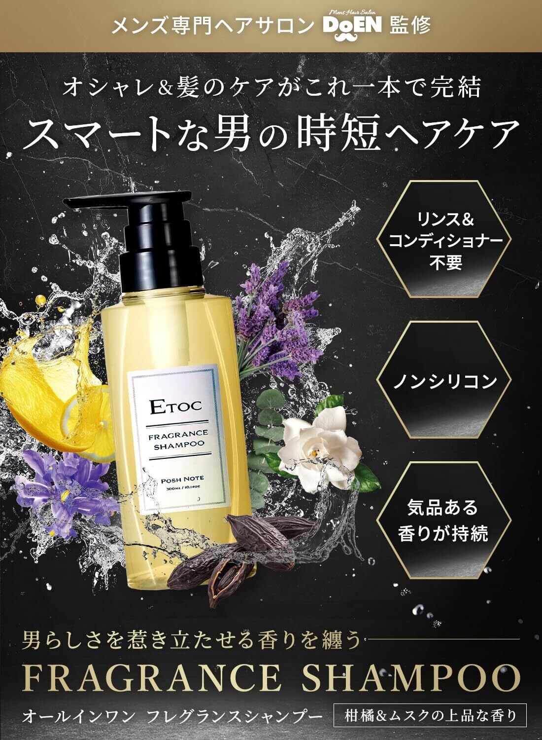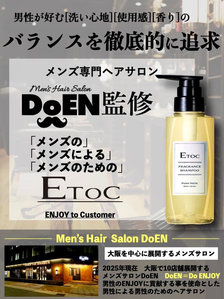 【大阪で10店舗展開するメンズヘアサロンDoEN開発】メンズサロンが真剣に開発したETOC香水シリーズのシャンプー&ボディソープ。つま先から頭の先まで男らしくモテる香りを纏い日々をエンジョイ。