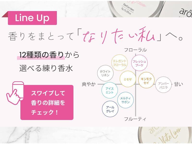 【12種類の香り】フレッシュブーケ・アンバーバニラ・アールグレイ・エレガントフローラル・セクシースイート・アイスミント・チェリーブロッサム・フローラルマリン・ミモザ・メルティサボン・リラクシーフルール・金木犀の12種類のラインナップでお好きな香りを楽しめます