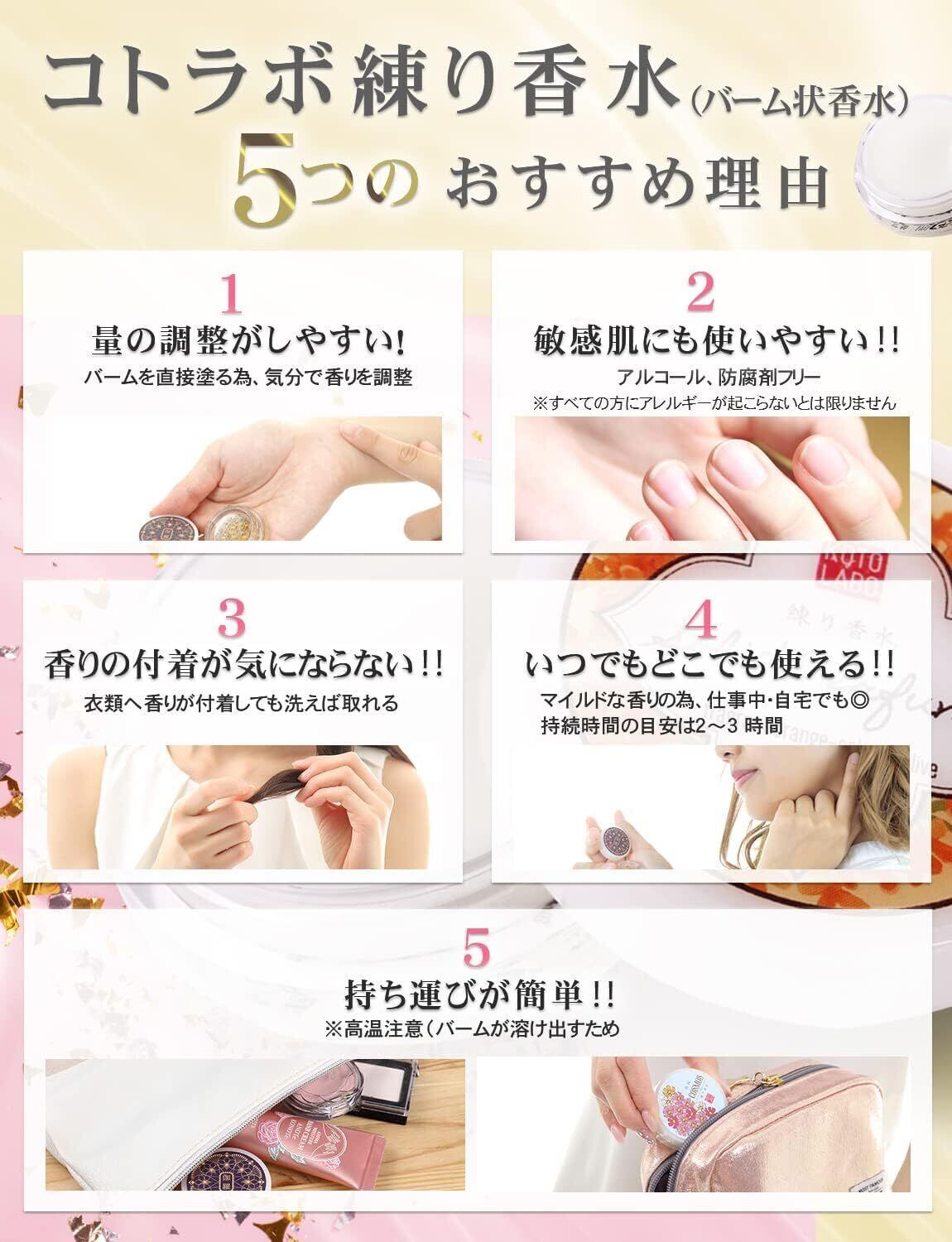 【秋桜の香り】ほにかにかおる秋桜が穏やかな安らぎと癒やしを与えてくれます。いつまでも眺めていたい可憐で美しい秋桜をイメージし、練り香水にしました。