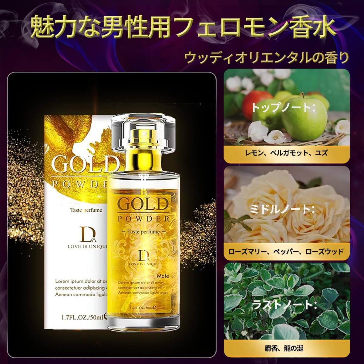男性用フェロモン香水 、セクシーな男古龍水、金箔香水 人気メンズ、異性の好感度を高める、女性を惹きつけるフェロモンの香水、濃縮版メンズ魅惑の香水(50ml/1.69oz)