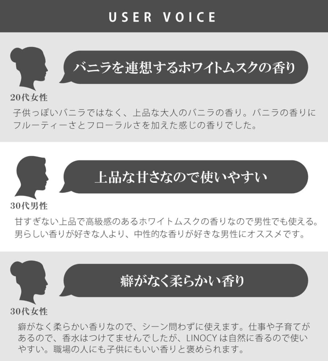 性別や年代問わず使える、ほんのり甘いホワイトムスクの香り。