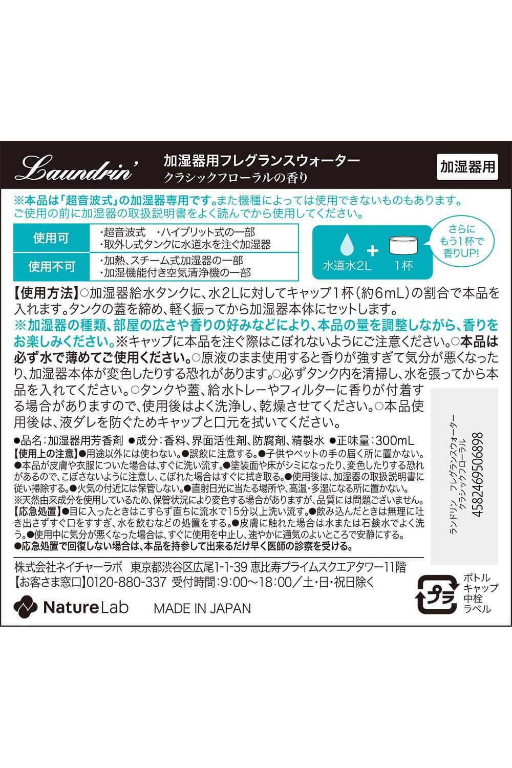 Laundrin ランドリン 加湿器用フレグランスウォーター クラシックフローラルの香り 透明 300ミリリットル (x 1) フローラル