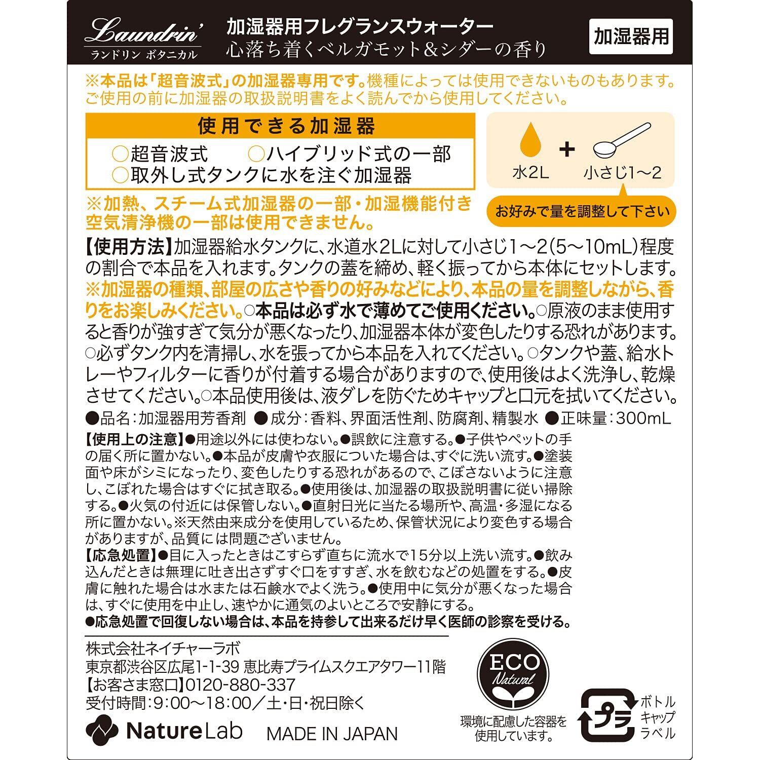 ランドリン ボタニカル 加湿器用フレグランスウォーター ベルガモット&シダーの香り 300ml