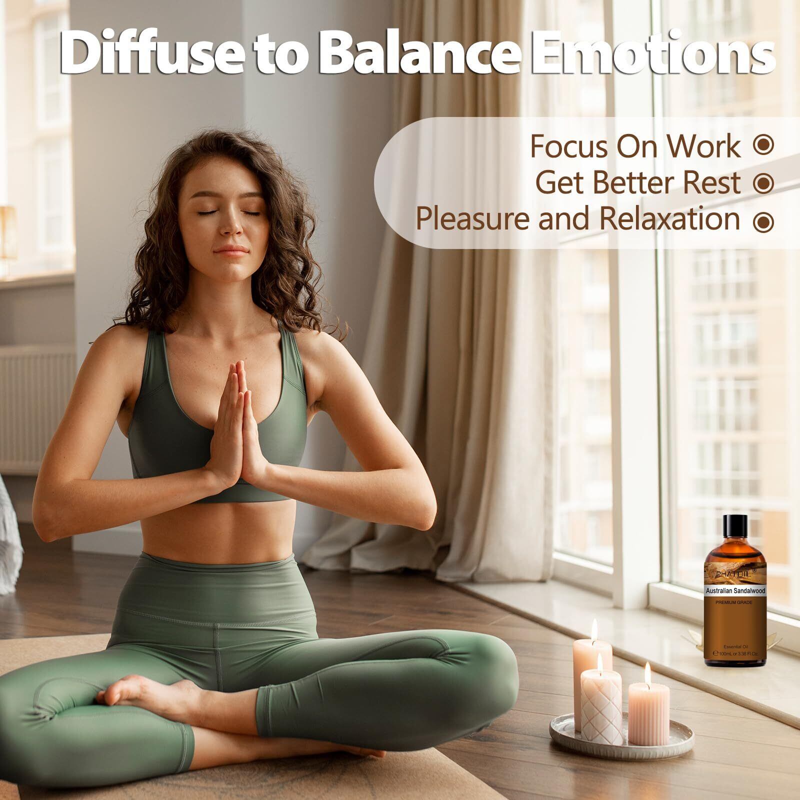 「穏やかで落ち着く香りで心身を癒す」:サンダルウッドアロマオイルは、木質調の温かみと、エルシーな土香、そして優しい甘みが融合した、独特で魅力的な香りで知られています。この香りは、ストレスを軽減し、心を落ち着かせ、リラックス感をもたらします。また、メディテーションや瞑想の際に使用すると、集中力を高め、精神的なクリアネスを得る手助けとなります。