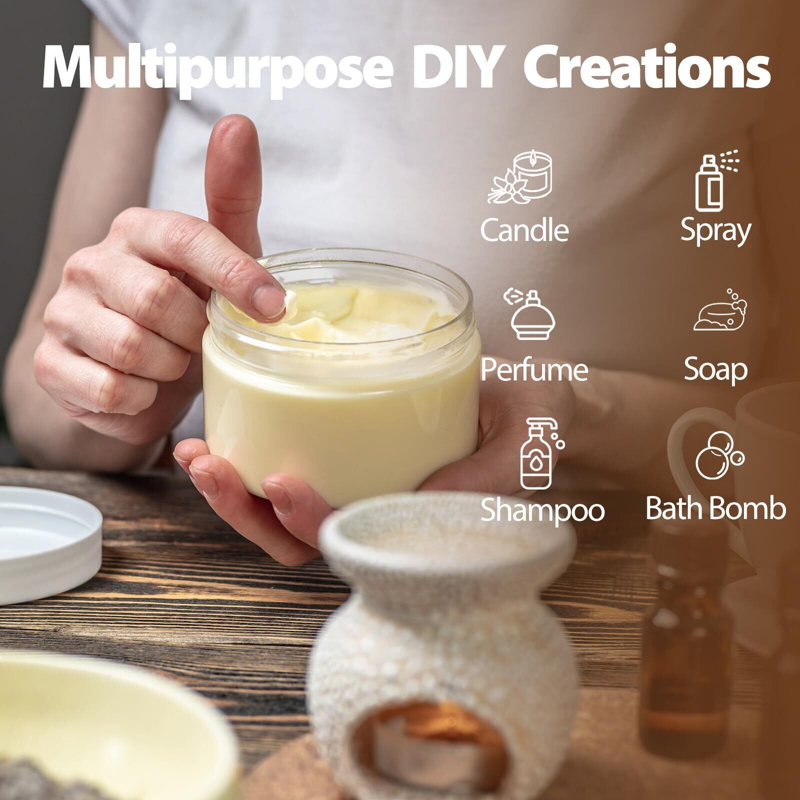 「多用途で幅広いシーンで活用可能」:お風呂に数滴加えることで、リラックスした入浴時間を演出します。アロマポットに使用すると、部屋全体に心地良い香りを広げ、快適な空間を作り出します。マッサージオイルに混ぜることで、マッサージの効果を高め、肌にもなめらかさを与えます。さらに、DIY のスキンケアやヘアケア製品に添加することで、肌や髪のケアにも役立ちます。