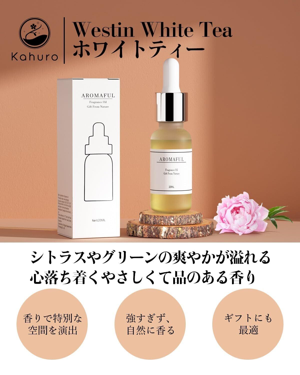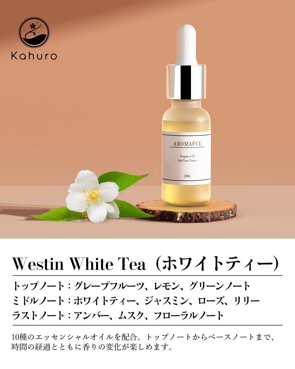 Kahuro ブレンドエッセンシャルオイル 20ml ホワイトティー(White Tea )ナチュラル 精油 天然 アロマオイル アロマディフューザー用 アロマストーン用 プレゼントに最適 ティー グリーンノート