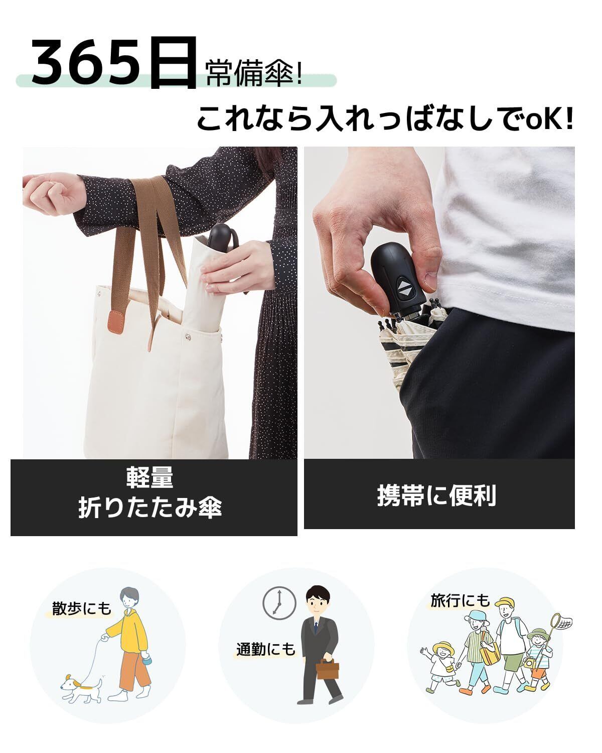 【軽量*携帯便利】 折りたたみ日傘フラットなデザインで、バッグに簡単に入れることができます。折りたたんだ厚さはわずか4cm、長さは25.5cm、重さは約189gです。超コンパクトボディ 使用?携帯に便利!全天候対応でき、雨の日も雪の日も晴天も使えます。男女兼用ワンタッチ 自動開閉折り畳み傘。通学、通勤、遠足、旅行,出張などの場合がご利用できます。(ご注意:ディスプレイの違いによリ色が若干異なる場合がありますので、実物に準じてください。)