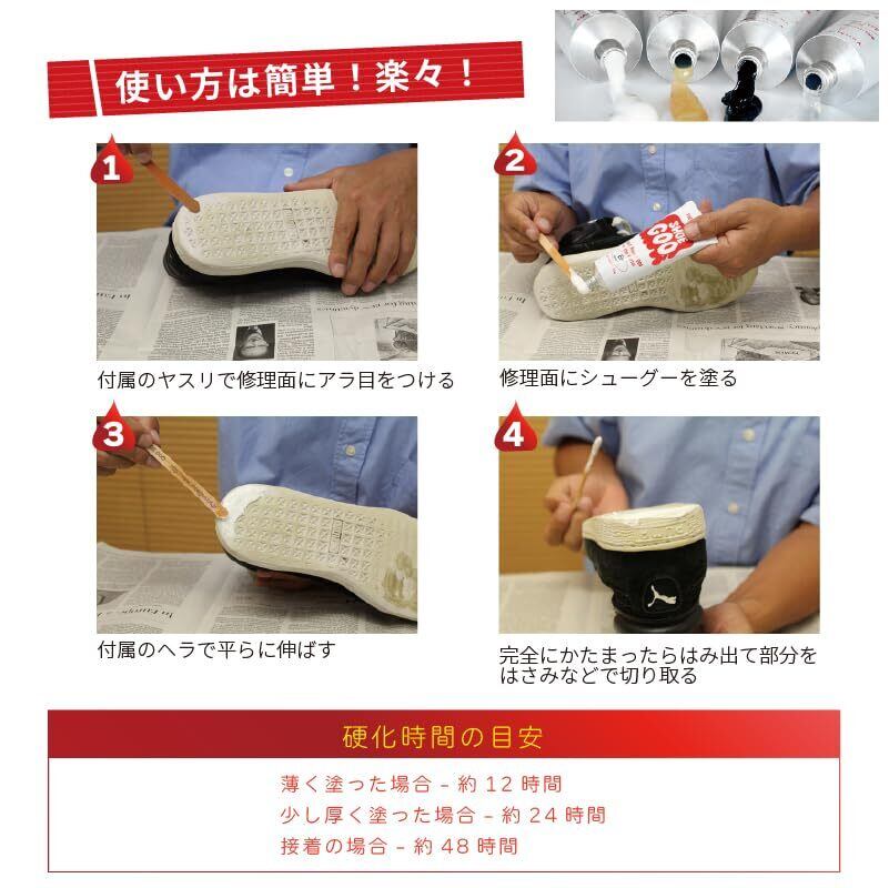 つま先のはがれや、磨り減った靴底の補修と滑り止めに! 自分で簡単に修理シューズ強力補修剤。