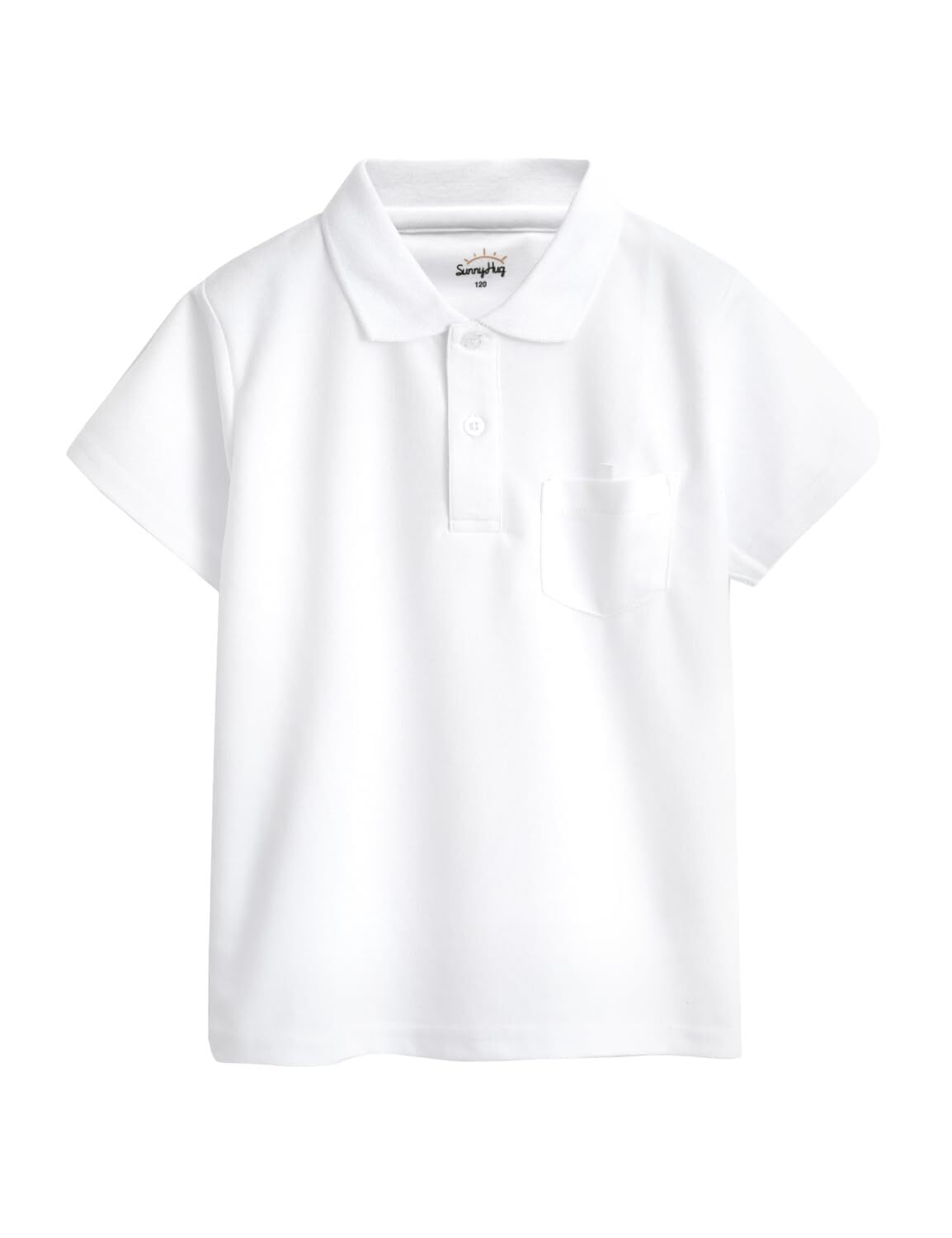 [サニーハグ] ポロシャツ 半袖 キッズ【丈夫で長持ち】 男女兼用 サラッと快適 ノーアイロン 毛玉防止 きちんとした見た目 吸汗速乾 抗菌防臭 子供 男の子 女の子 スクールポロシャツ 小学生 幼稚園 中学生 通学 冠婚葬祭 白 100-170 1P/2P
