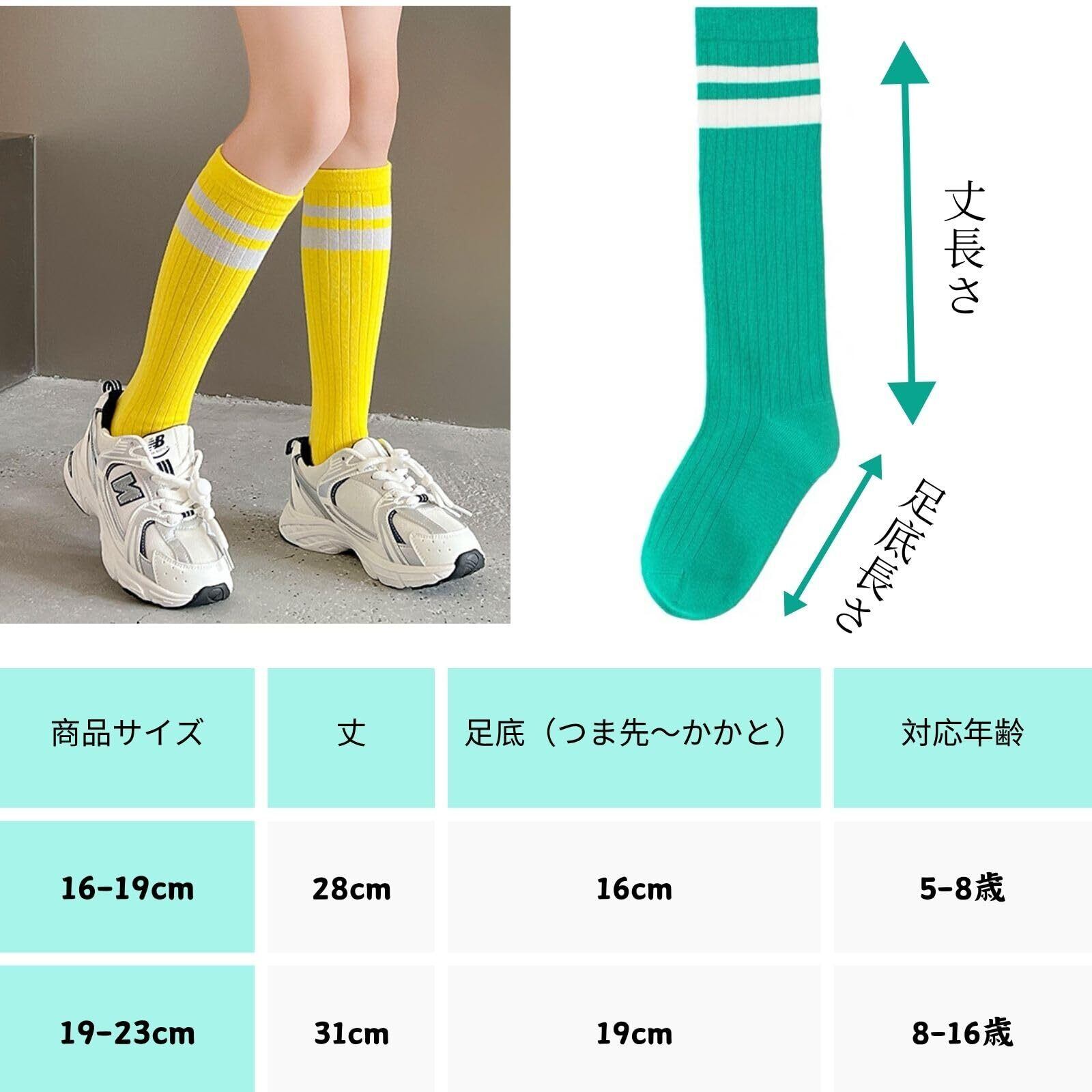 [konamiya] 選べる11色 子供 靴下 キッズ ハイソックス ラインソックス カラフル おしゃ ボーダーソックス ニーハイ チーム衣装 運動会 イベント用 目立つ 蛍光色