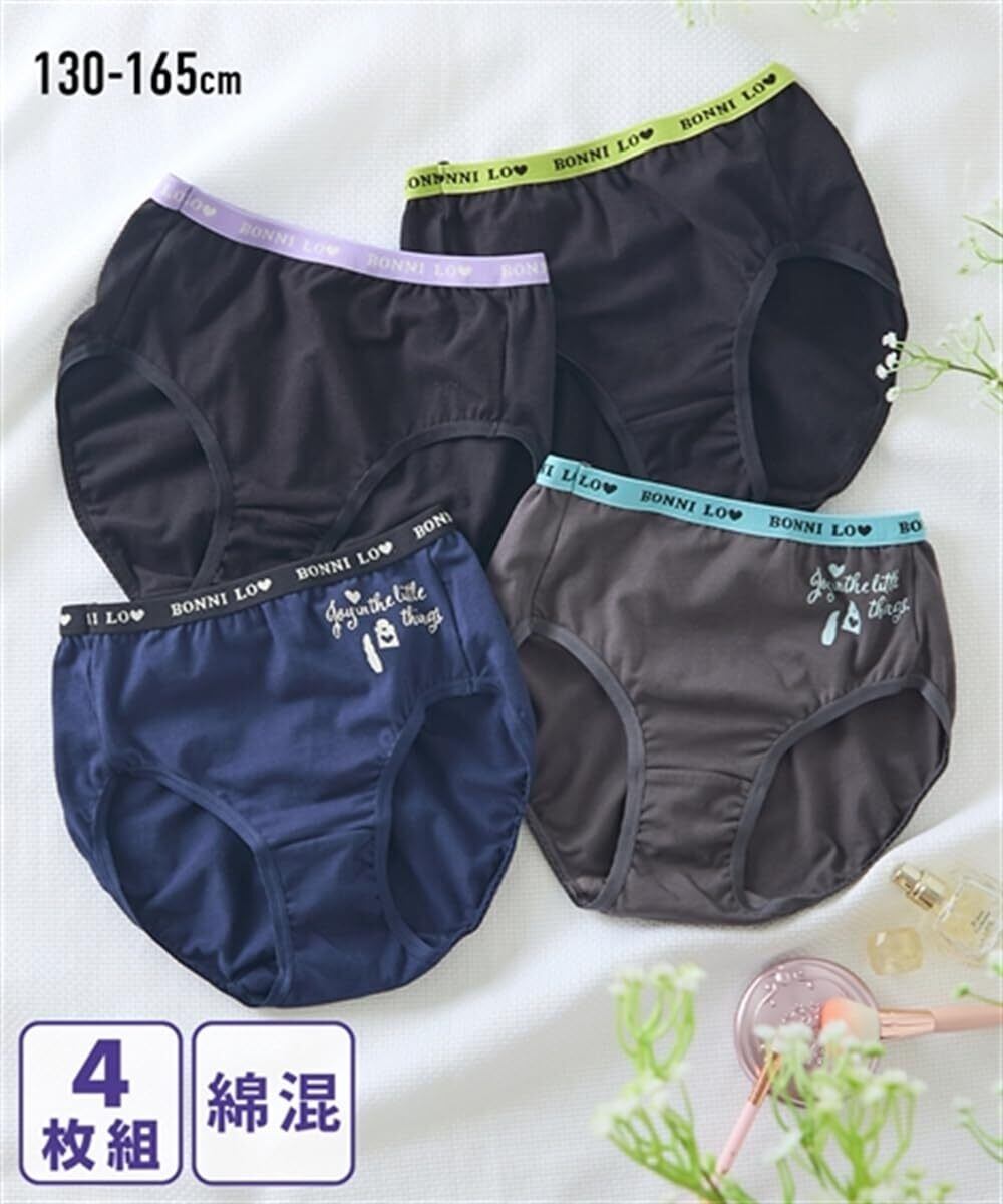 ちょっと可愛い&ちょっとお姉さんっぽい綿混ストレッチショーツ4枚組彡
