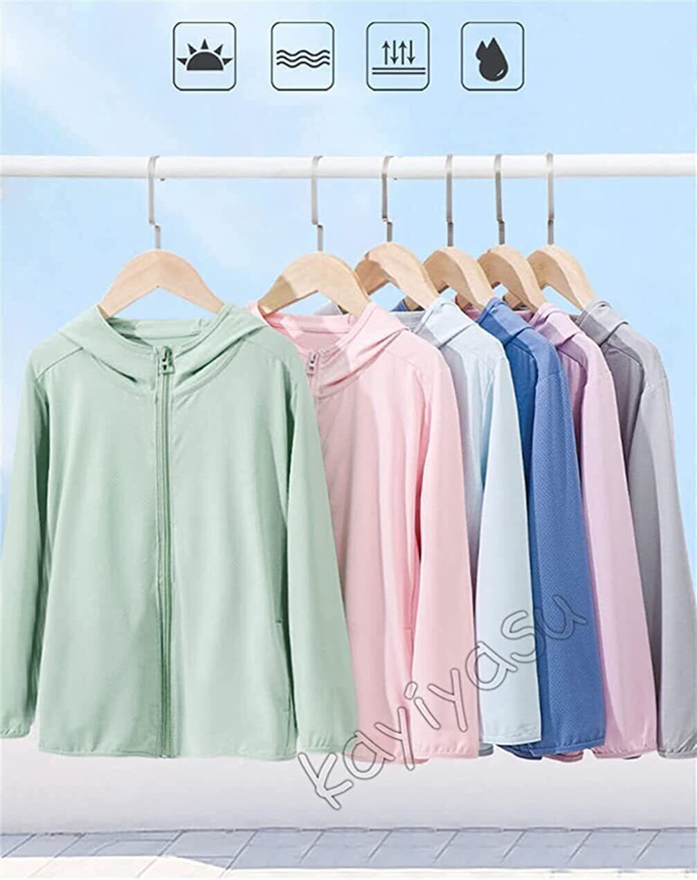 [Kayiyasu] 子ども 日焼け止め 薄手フード付きパーカー 男の子 女の子 水遊び 冷え防止 虫よけ UVカット 紫外線カット 長袖 速乾 キッズ 110-180 親子服