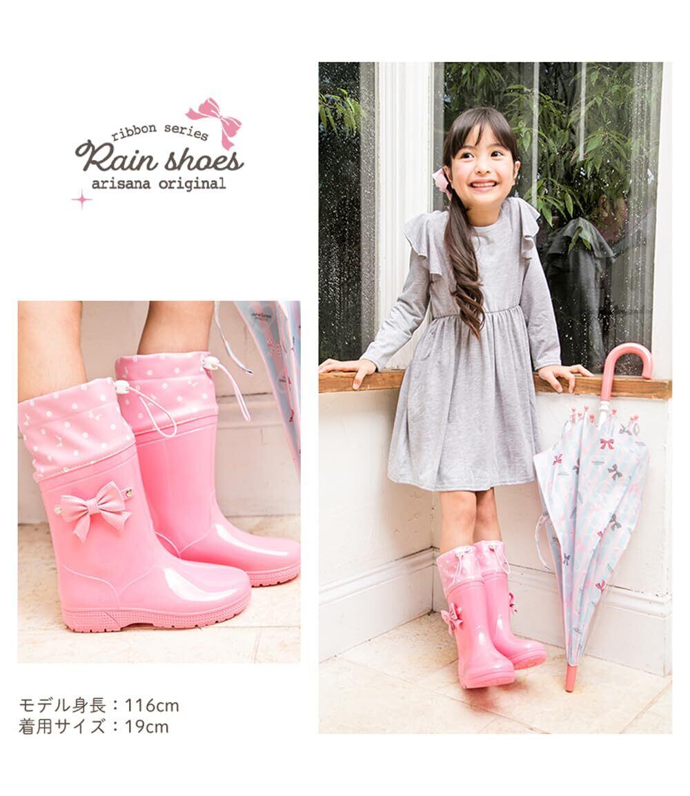 [アリサナ] レインブーツ フード付き キッズ 女の子