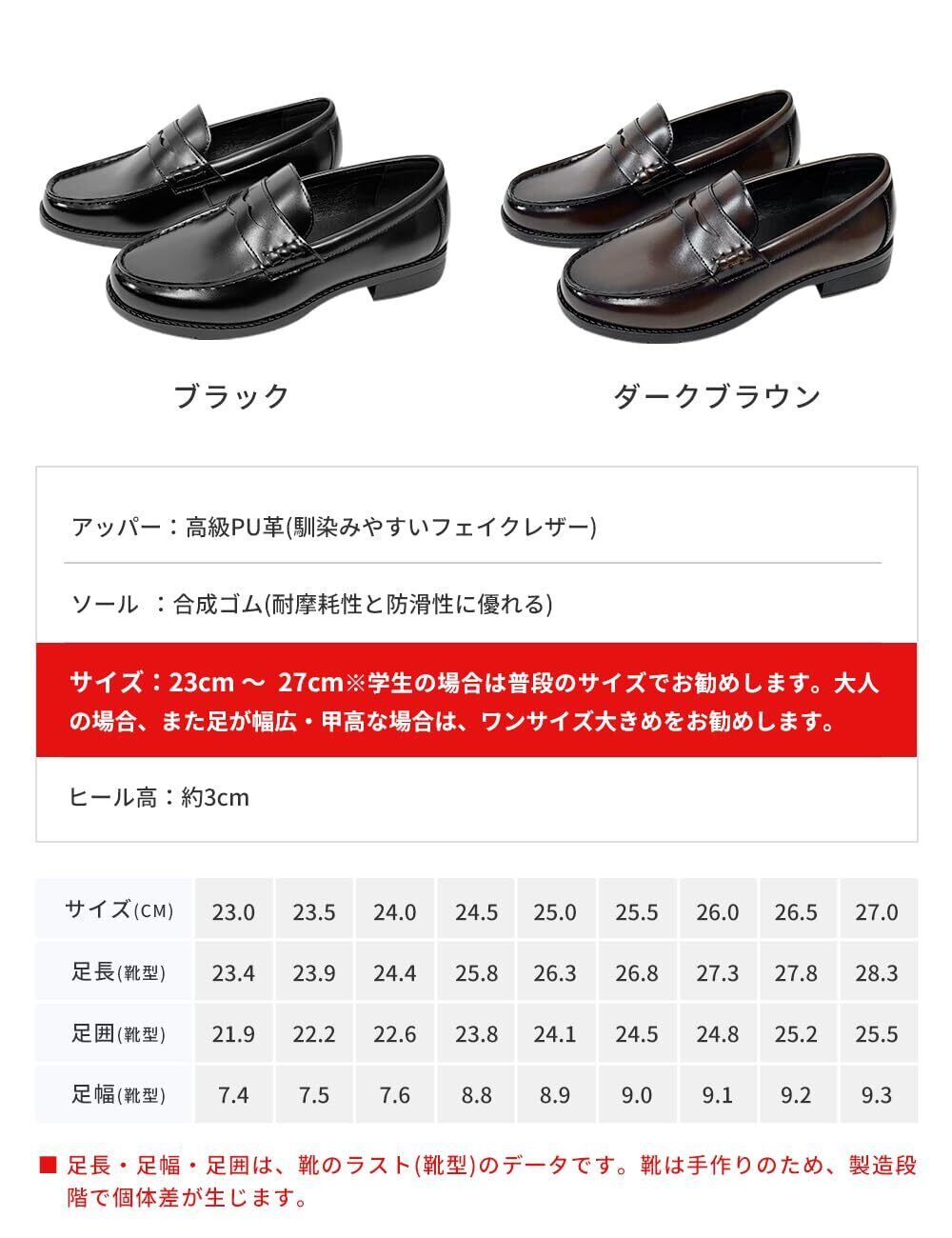 【ローファー 学生 女子】サイズ:23cm~27cm※学生の場合は普段のサイズでお勧めします。大人の場合、また足が幅広・甲高な場合は、ワンサイズ大きめをお勧めします。学生から大人まで、オンオフ問わず、コーディネートしやすい定番ローファーです。