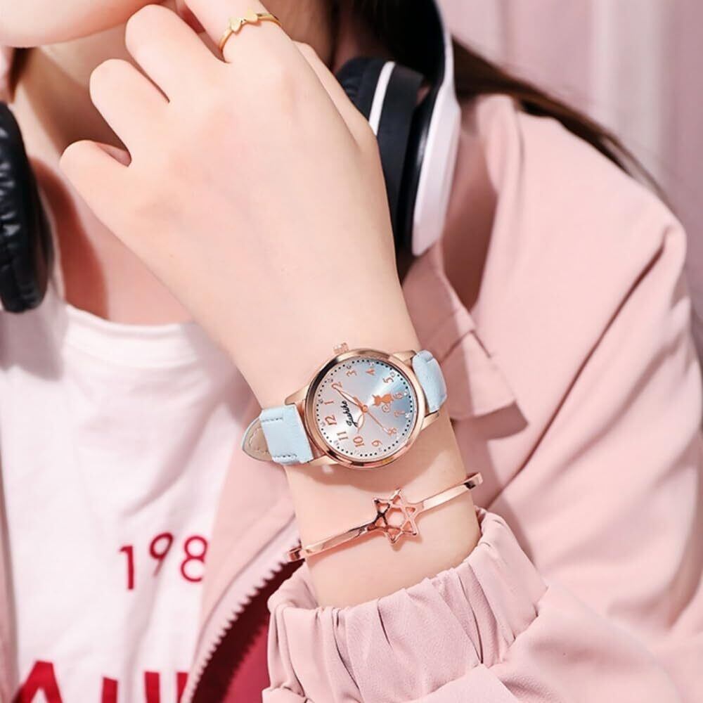 【特価商品】Qiowyuo キッズ腕時計 クオーツ アナログ表示 ガールズ子供用腕時計 子供の日 入学 通学 入園 通園 新学期 誕生日 プレゼント お祝い (12.20-ブルー) | 無意味ステッカー