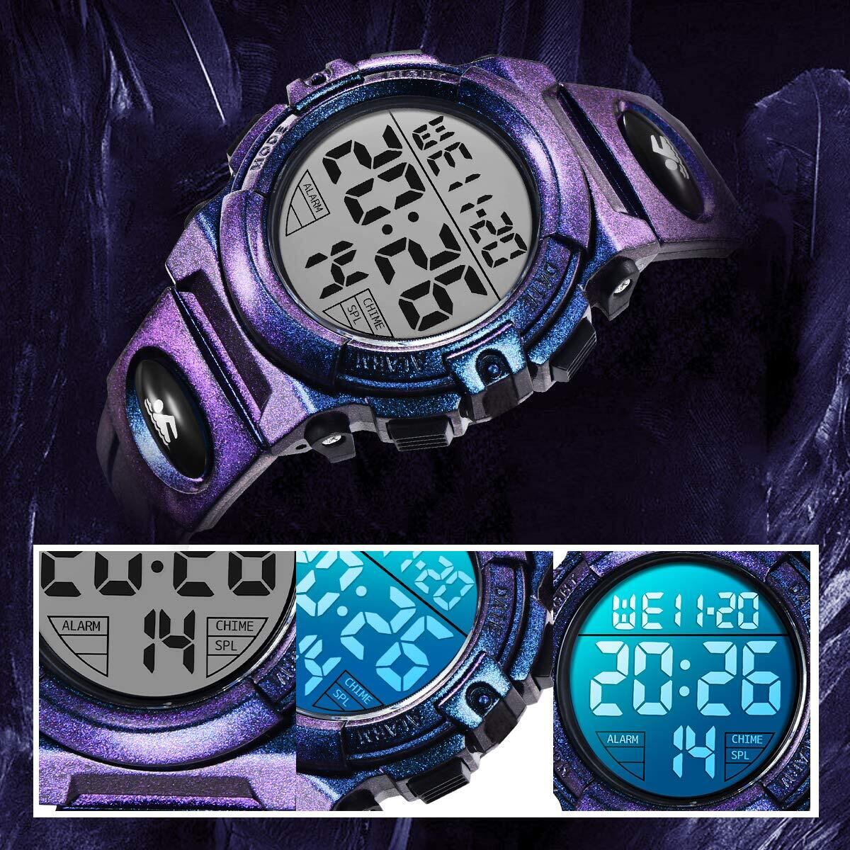 子供腕時計 ボーイズスポーツウォッチ アウトドア多機能防水 アラート 日付曜日表示 デュアルタイム LED アナログ表示 女の子男の子 デジタルウォッチ (パープル)