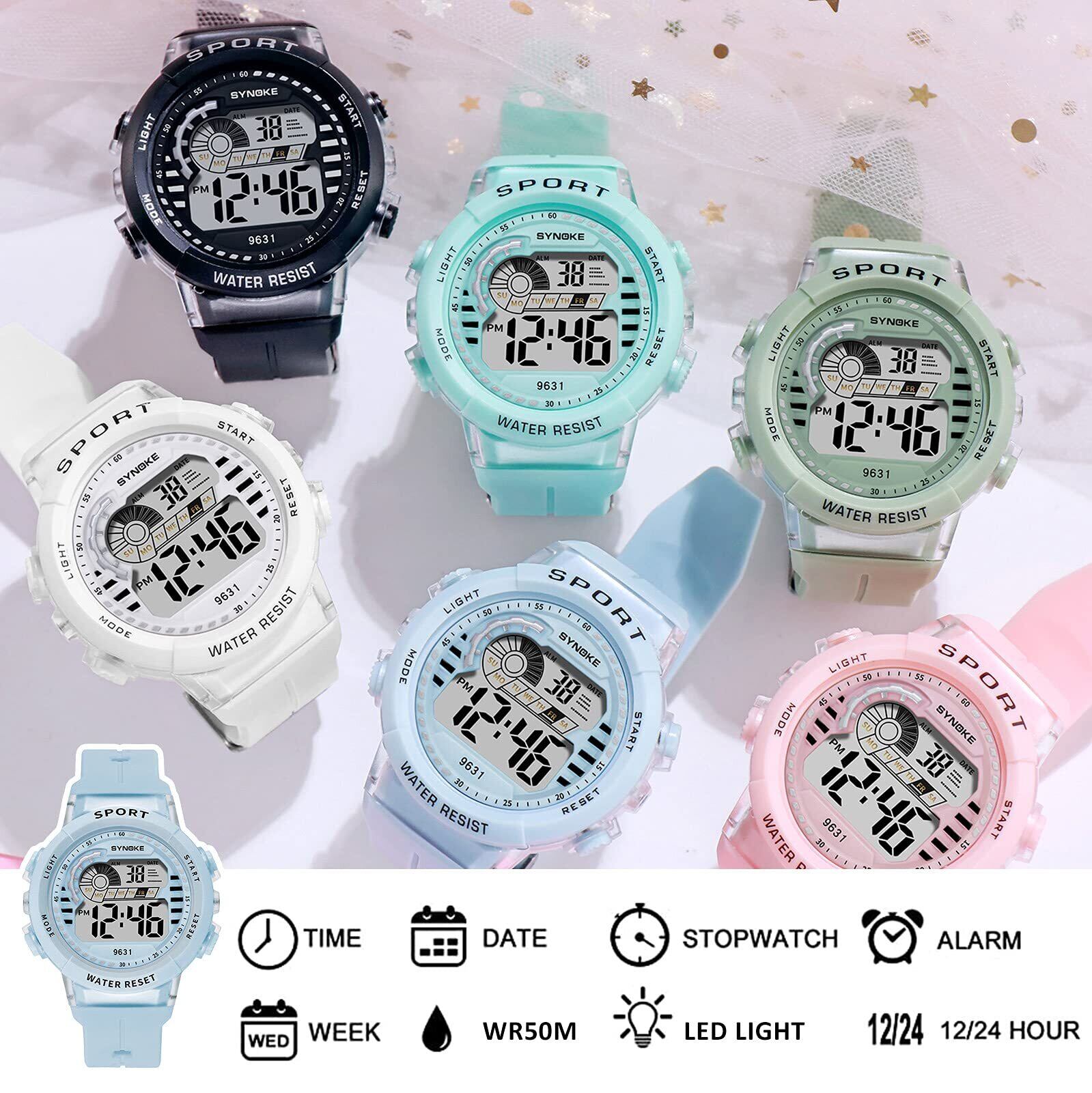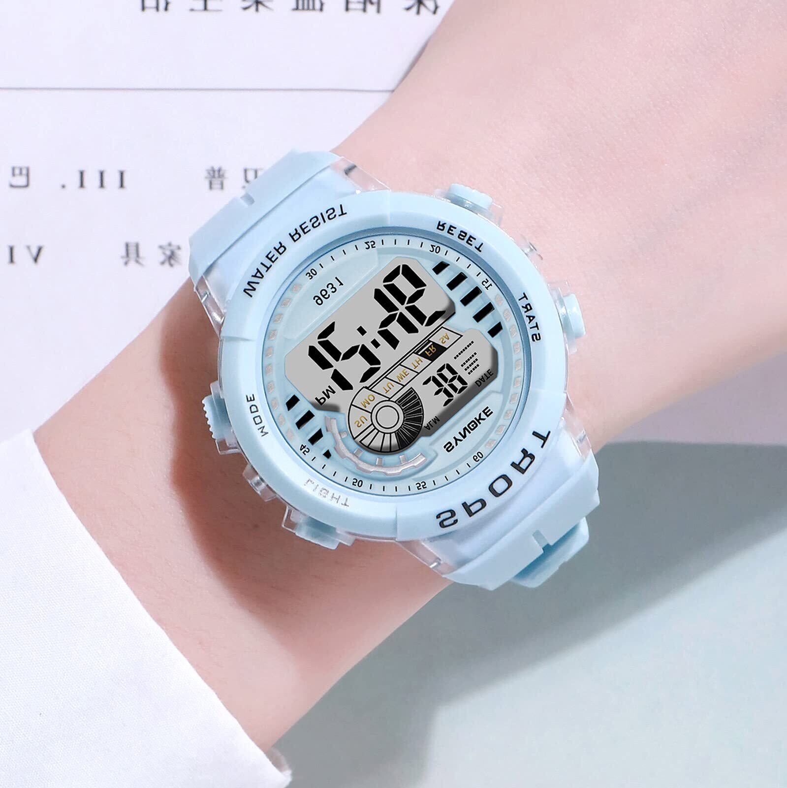 【多機能キッズスポーツウォッチ】:50M防水、デジタル表示、LED発光表示、日付表示、アラーム、ストップウォッチ。 ファッションスポーツ腕時計、子供のお気に入りの贈り物。