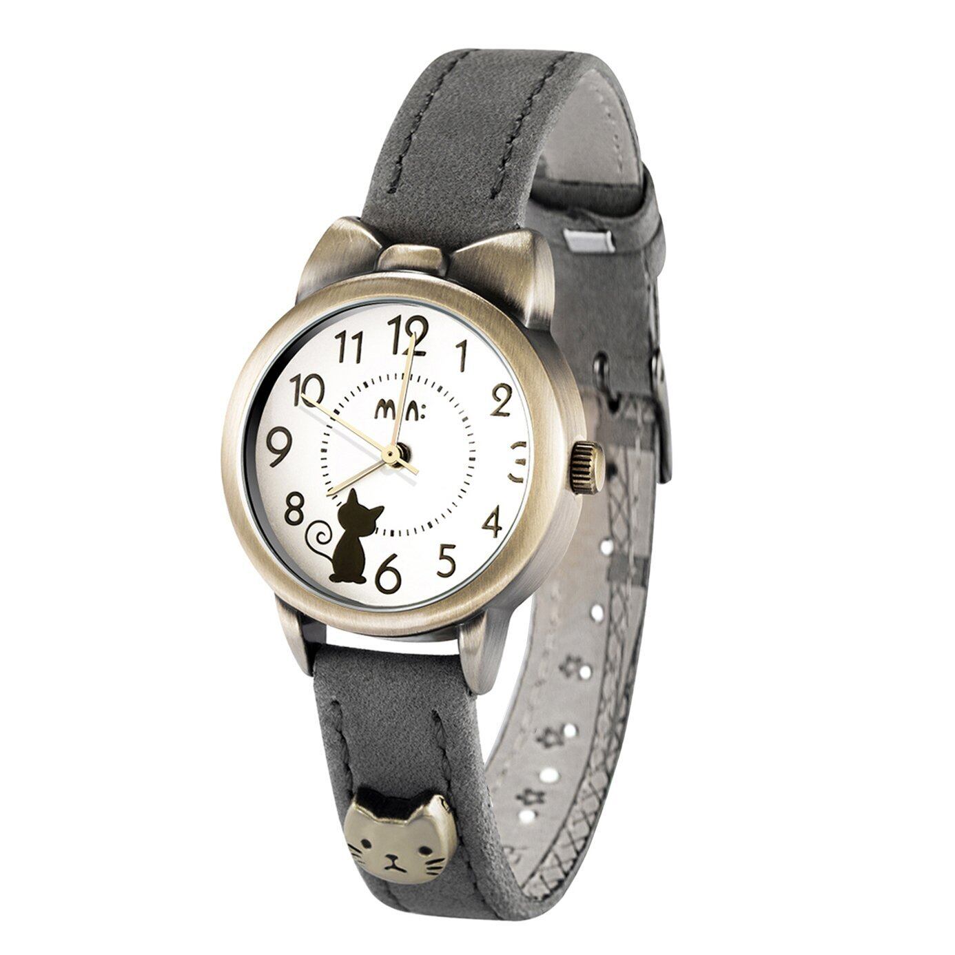 可愛い ねこ 猫 ガールズ 腕時計,fq234 グレー 革 ベルト 女子 学生 ウォッチ キッズ