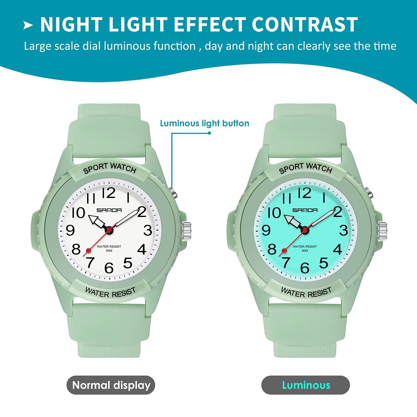時計の発光機能のおかげで、この子供用時計は暗闇の中で時間を見ることもできます