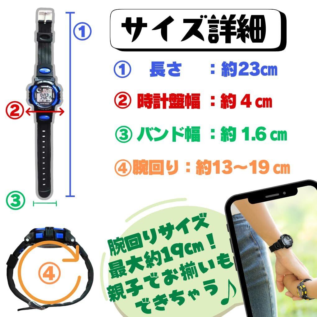 2.強度と耐久性: 子供たちは遊ぶのが大好きですのでこの時計は特に頑丈に作られています。 落としても壊れにくい素材を使用し水や汚れにも強いためアウトドアやスポーツの際にも安心してお使いいただけます。