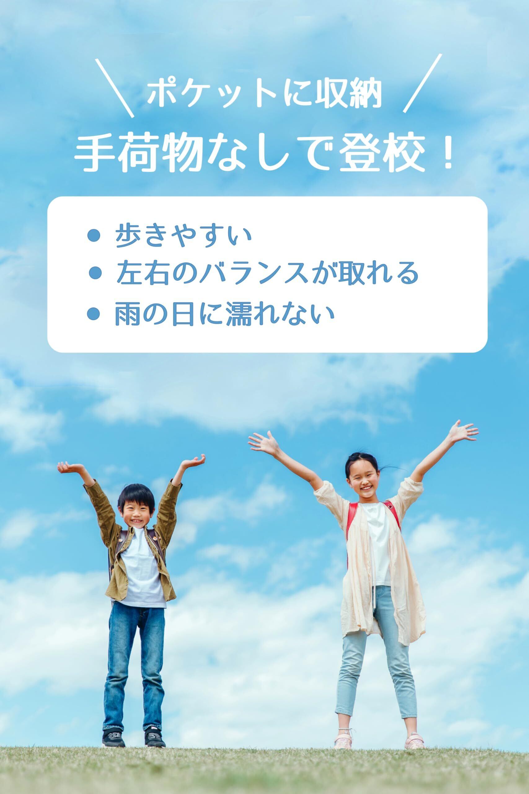 【撥水加工で雨の日にも活躍!】撥水加工でランドセルのレインカバーとしても活躍。手荷物をランドセルカバーのポケットに収納すれば、手荷物も濡れず傘もさしやすいです。付け外しが簡単なため、雨の日や手荷物が多い時だけ使用することも可能です。ランドセルの補助バッグとして便利にお使いいただけます。