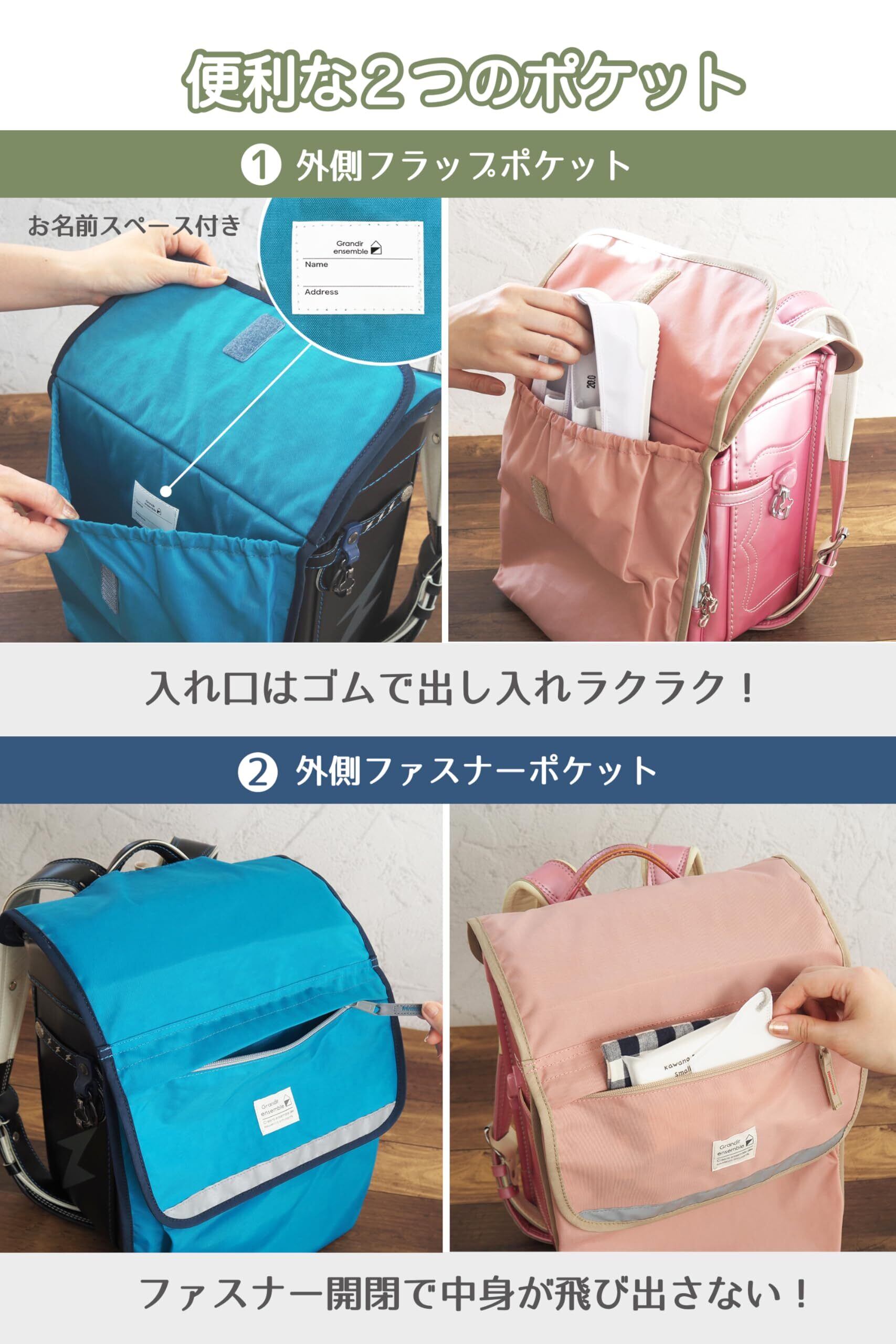 [Grandir ensembie] ランドセル カバー 【 KIDS ランドセルカバー 】 収納 補助バッグ ポーチ ( ポケット付き レインカバー ) 雨 男の子 女の子