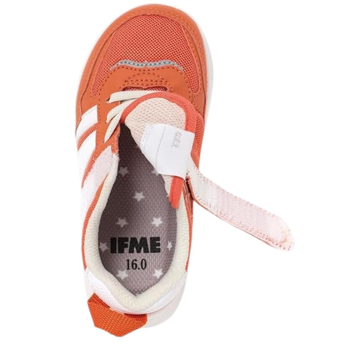 子供たちの足を考えた、さまざまな健康機能と、可愛らしい・シンプルなデザインを兼ね備えた、「IFME」のキッズシューズ。スムーズな歩きは、「着地」、「安定」、「蹴り出し」、とスリーステップです。そんな体重移動をサポートするキッズシューズです。大きく開くベルト・ベロ構造になっているので、履いたり脱いだりが楽々です。一人で脱ぎ履きし易いです。子供たちの外遊びや、お出かけを、「IFME」で特別な時間に。【軽量ソール】柔らかくて、強度もあるのに、軽量な素足のような履き心地のソールです。 【ウインドラスソーサ】(土踏まずのアーチ形成を助ける中敷):先端の2箇所のくぼみで、足指を曲げ伸ばしやすくし、足底筋膜を緊張させ、自然と土踏まずを鍛えられる効果があります。【アウトサイドストラップ】脱ぎ履きしやすいように、ぐっと、かかと部分を引っ張れるように外側にストラップを付けました。