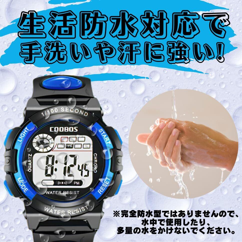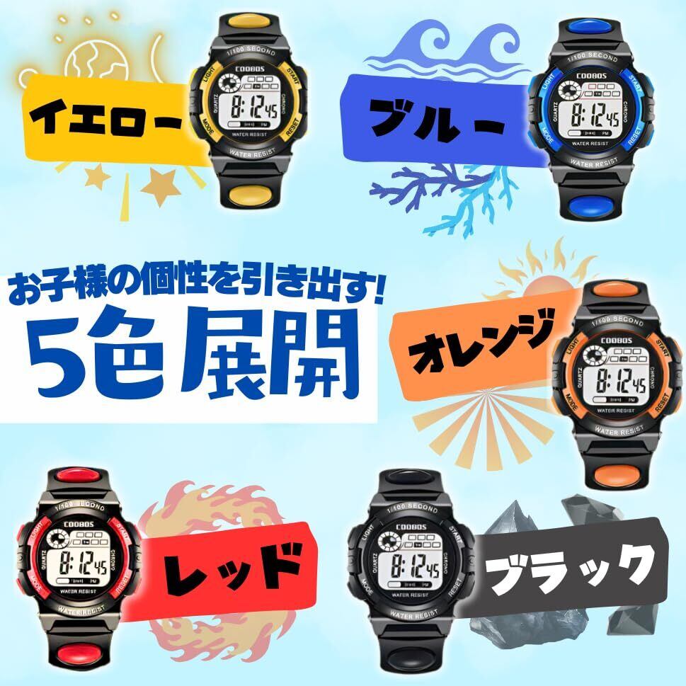 2.強度と耐久性: 子供たちは遊ぶのが大好きですのでこの時計は特に頑丈に作られています。 落としても壊れにくい素材を使用し水や汚れにも強いためアウトドアやスポーツの際にも安心してお使いいただけます。