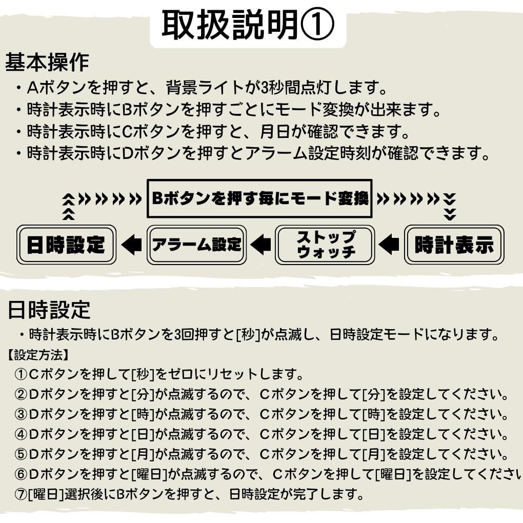 3.使いやすさを追求: デジタル表示のため子供でも一目瞭然。 大きく明瞭な数字で時間がすぐにわかります。 またボタンの配置や機能もシンプルでお子様でも簡単に操作できます。