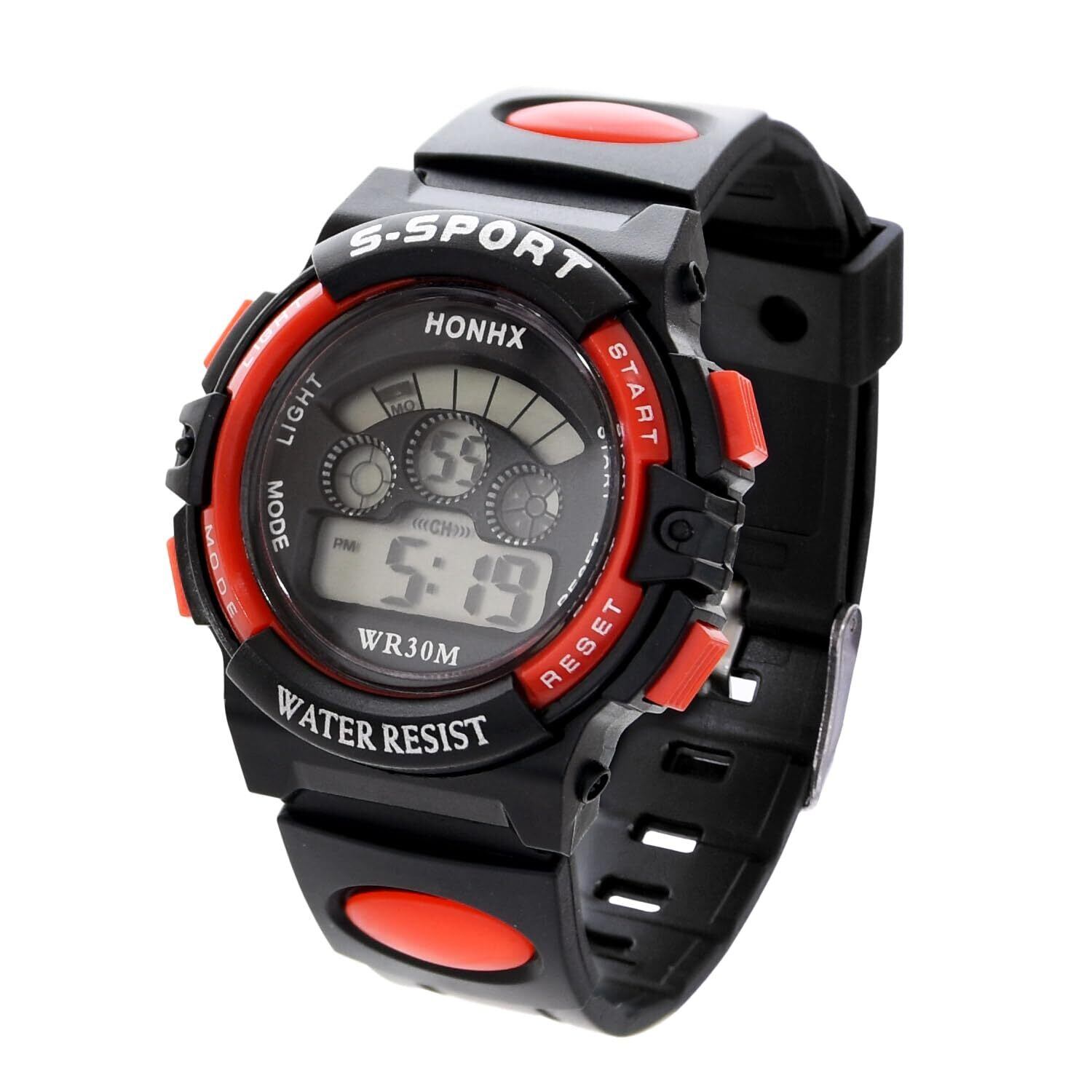 腕時計 子供 【届いてそのまま渡せるギフトBOX付き】[50M防水/デジタル/LEDディスプレイ/アラーム機能付/日本語の説明書付xお子様へのプレゼントに [MRD] (レッド)