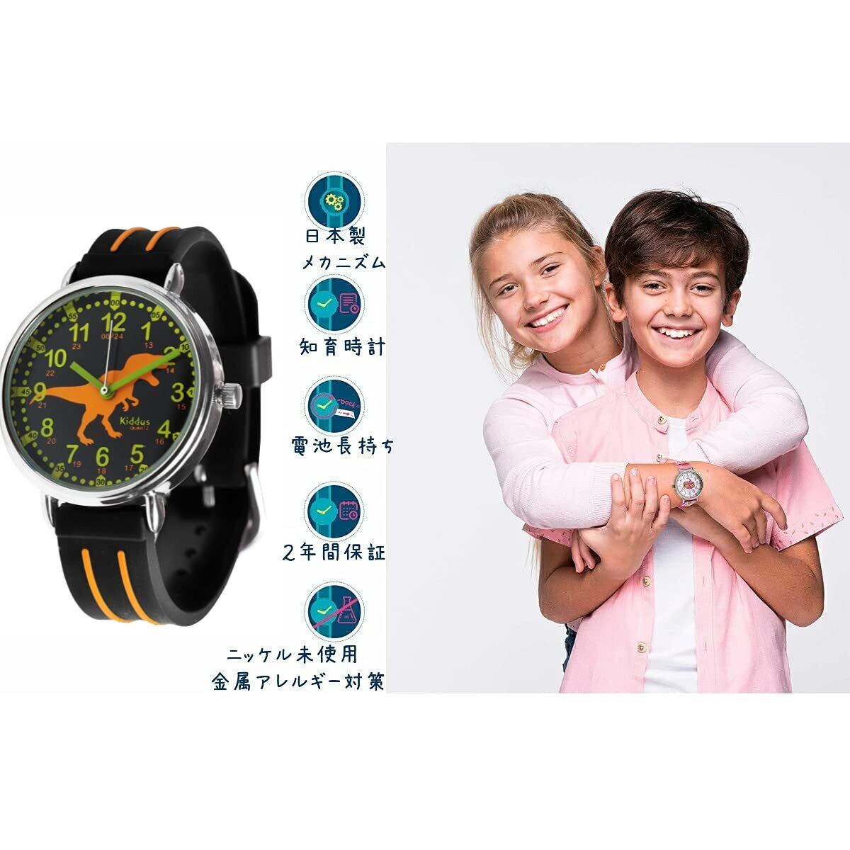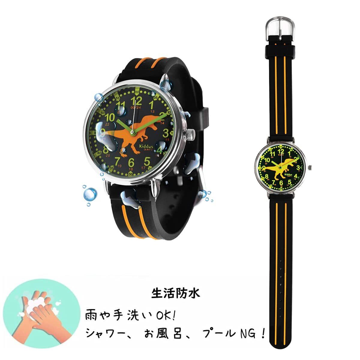 【新着商品】キッダス (Kiddus) 子供 腕時計 キッズ 防水 アナログ 知育時計 男の子 女の子 スペイン 小学生 お誕生日 クリスマス プレゼント 知育 エクササイズランセットで時間を学ぶ (T-REX) | 無意味ステッカー