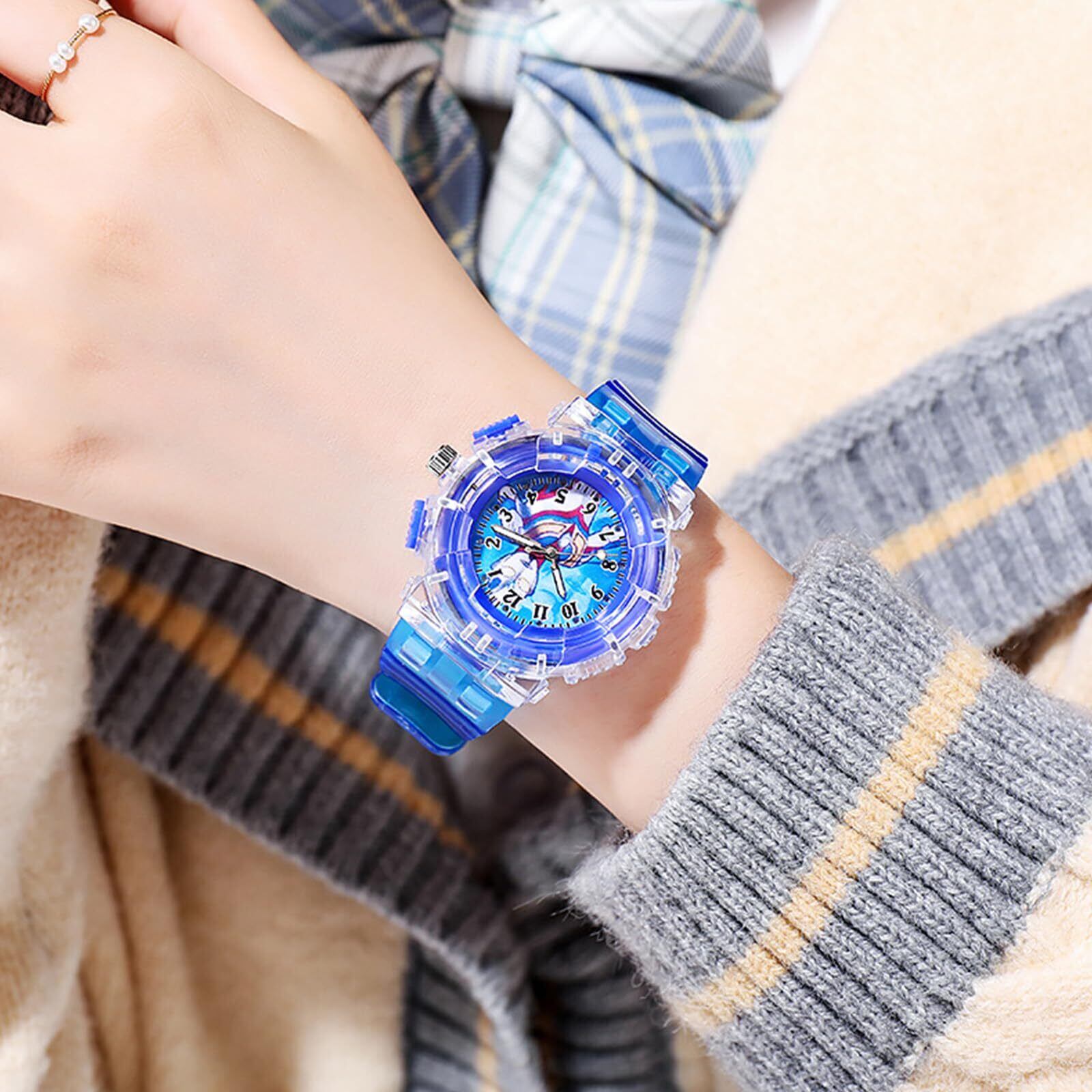 【新着商品】腕時計 子供 ォーツ時計 腕時計 軽量 クオーツ腕時計 ウォッチ 光る腕時計 格好良い シンプル腕時計 うで時計 かわいい ウォッチ 入学 入園 誕生日 プレゼント 男女兼用 ブルー | 無意味ステッカー