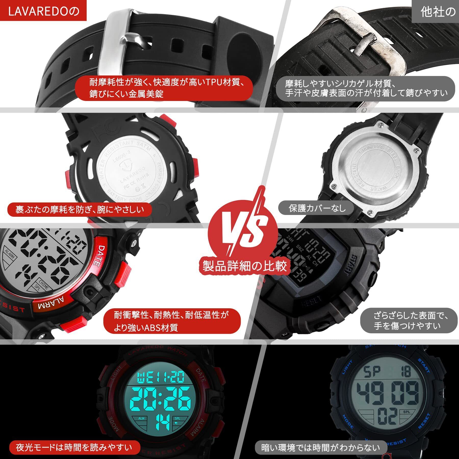 【超快適な素材を採用して】:スポーツウォッチは高品質のTPU素材を採用し、耐摩耗性が強く、壊れにくく、快適度が高い。錆びにくいステンレス製の美錠と裏ぶたを採用し、耐久性がより強い。はっきりとした表示画面と大きな数字表示で、より子供向けのデジタル腕時計です。