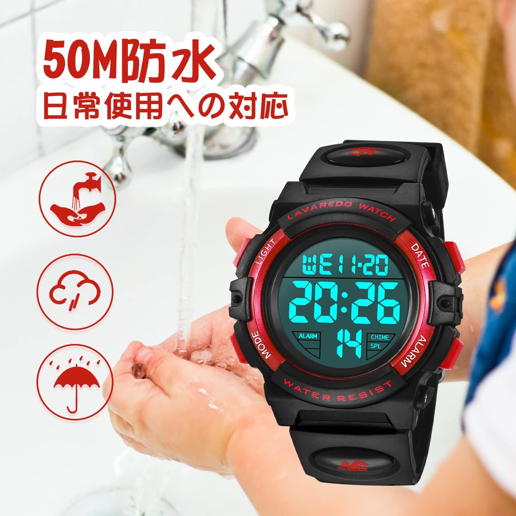子供腕時計 キッズ デジタル 男の子 スポーツウォッチ ボーイズ 防水腕時計 多機能 50メートル防水 LED表示 アラート ストップウォッチ 日付 曜日 アウトドア 入学祝い 女の子 男の子 誕生日 プレゼント 取扱説明書付き
